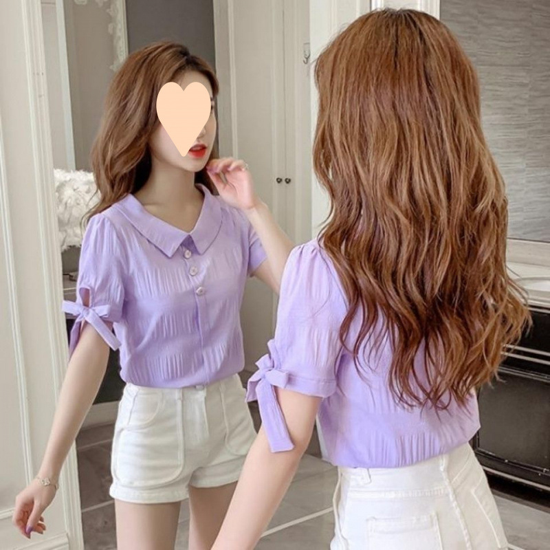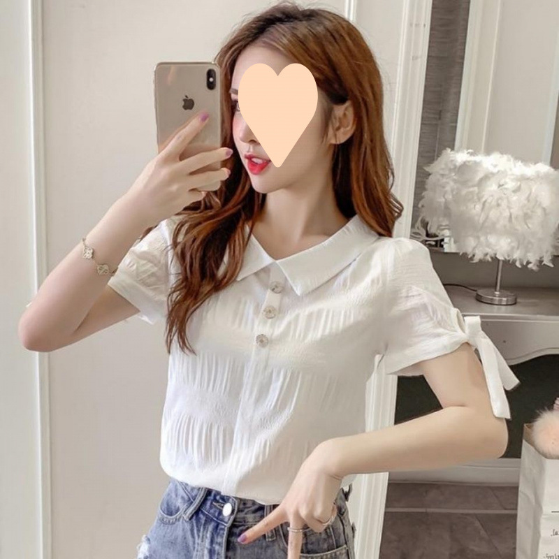 2025년 여름 신상 한국식 다재다능한 작은 신선한 여성용 반팔 셔츠, 슬림하고 달콤한 쉬폰 셔츠 상의스토어 가기