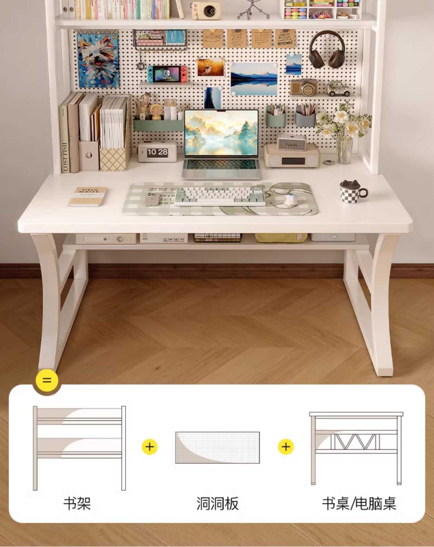 • 16mm 두께 [선택된 원목 보드 코어] 120cm 따뜻한 흰색 및 무료 천공 보드 액세서리