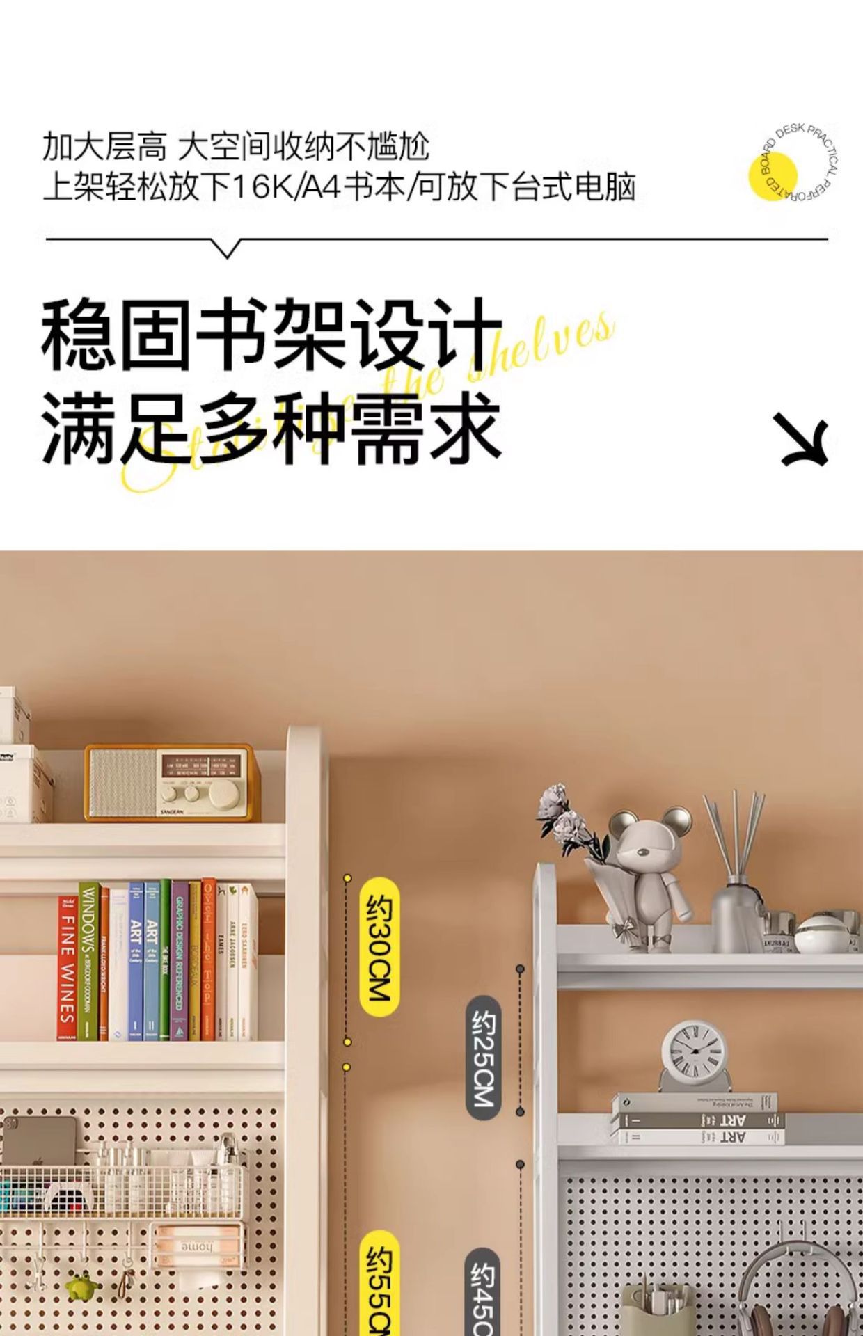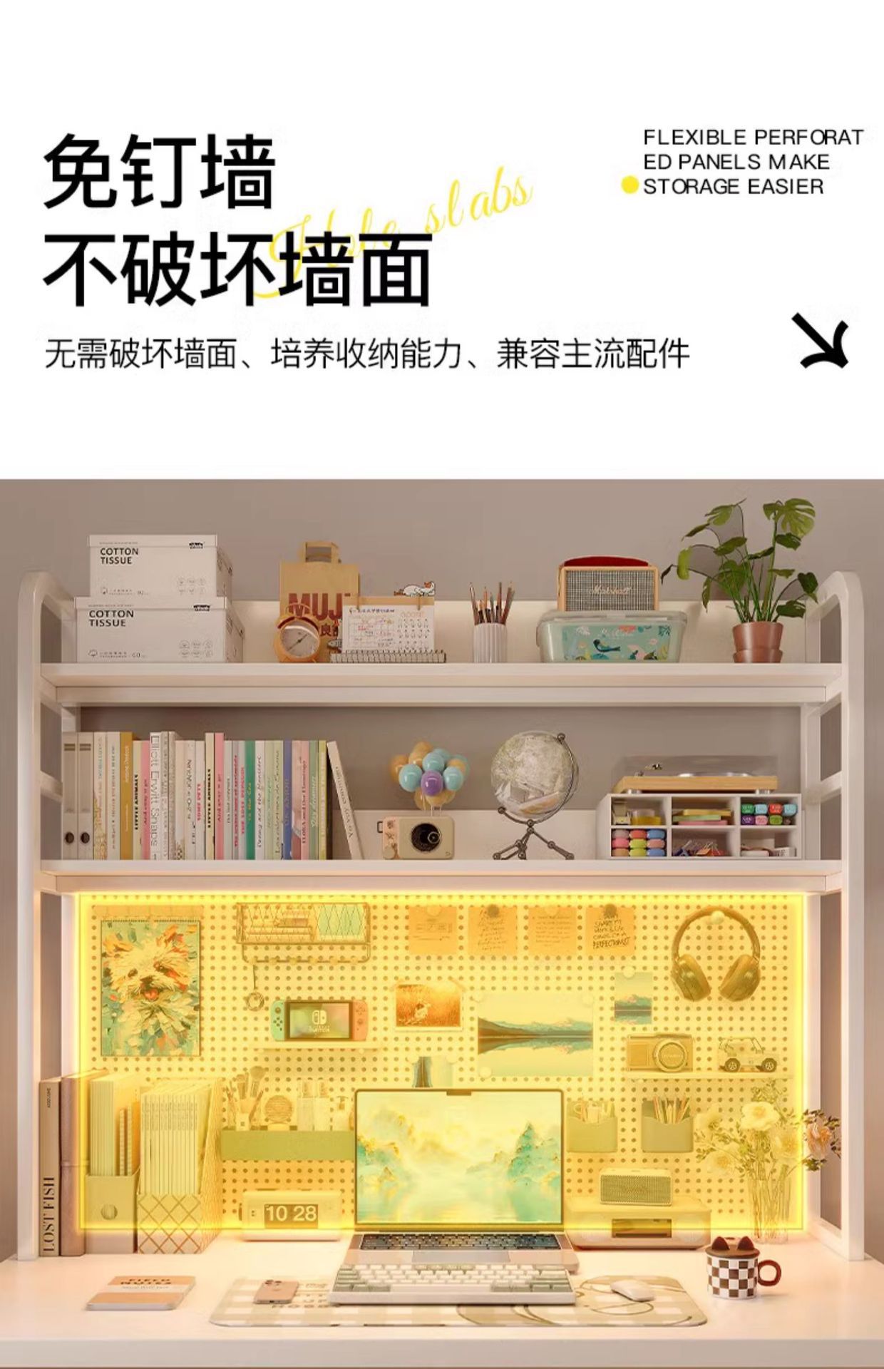• 16mm 두께 [선택된 원목 코어] 80cm 따뜻한 흰색 및 무료 천공 보드 액세서리