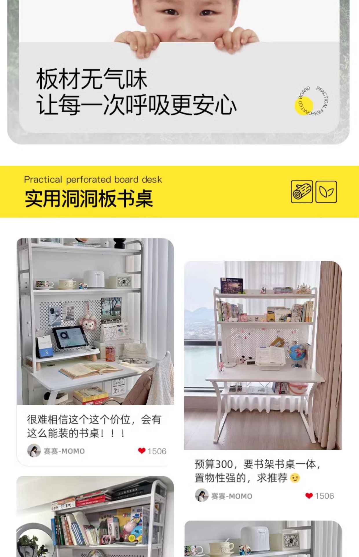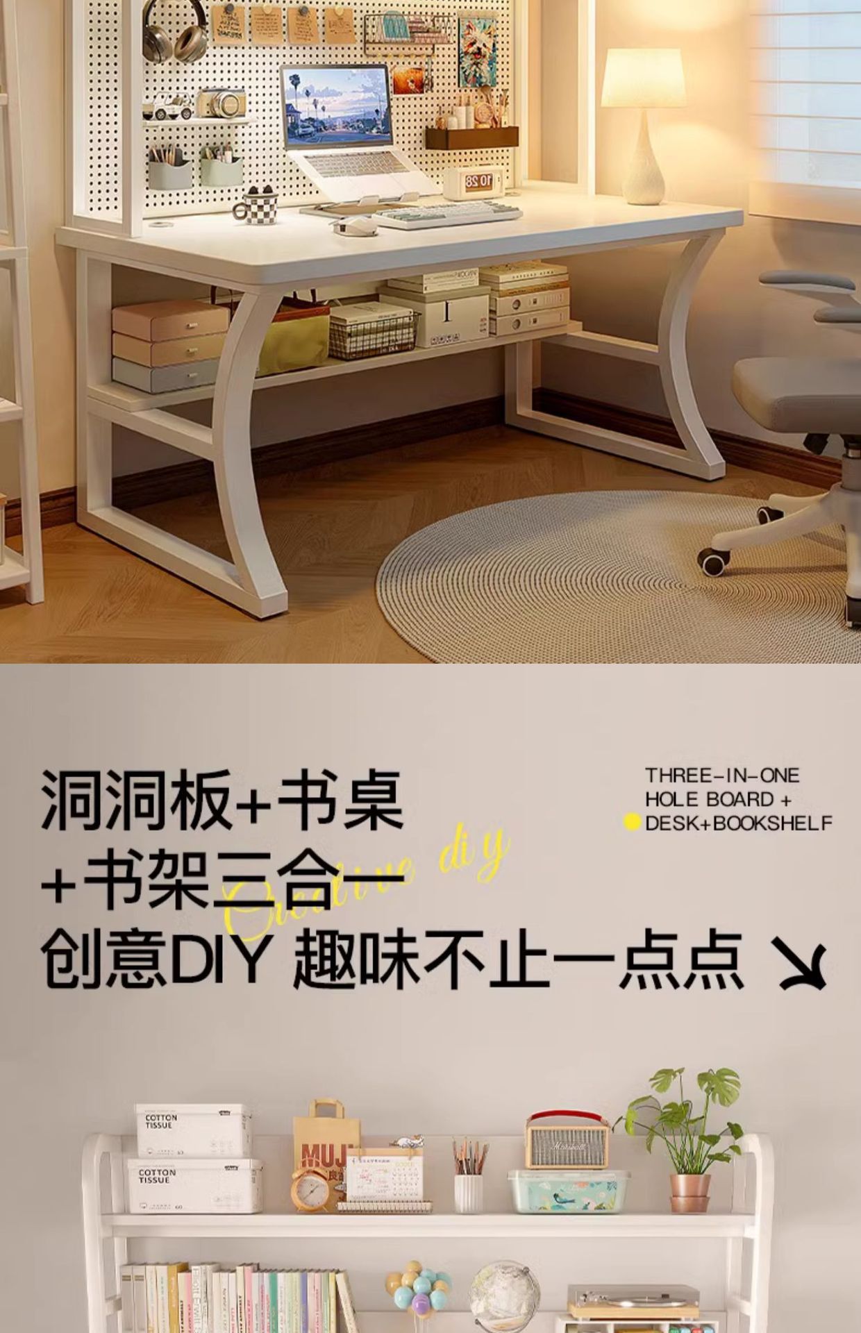 • 16mm 두께 [선택된 원목 코어] 140cm 따뜻한 흰색 및 무료 천공 보드 액세서리