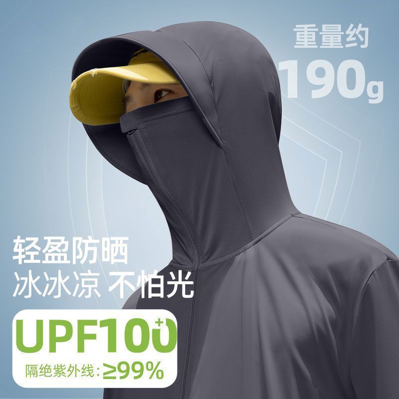 EXLUX 얼음 실크 자외선 차단 의류 남성용 자외선 방지 낚시 의류 얼굴을 덮는 큰 챙이 있는 자외선 차단 의류스토어 가기