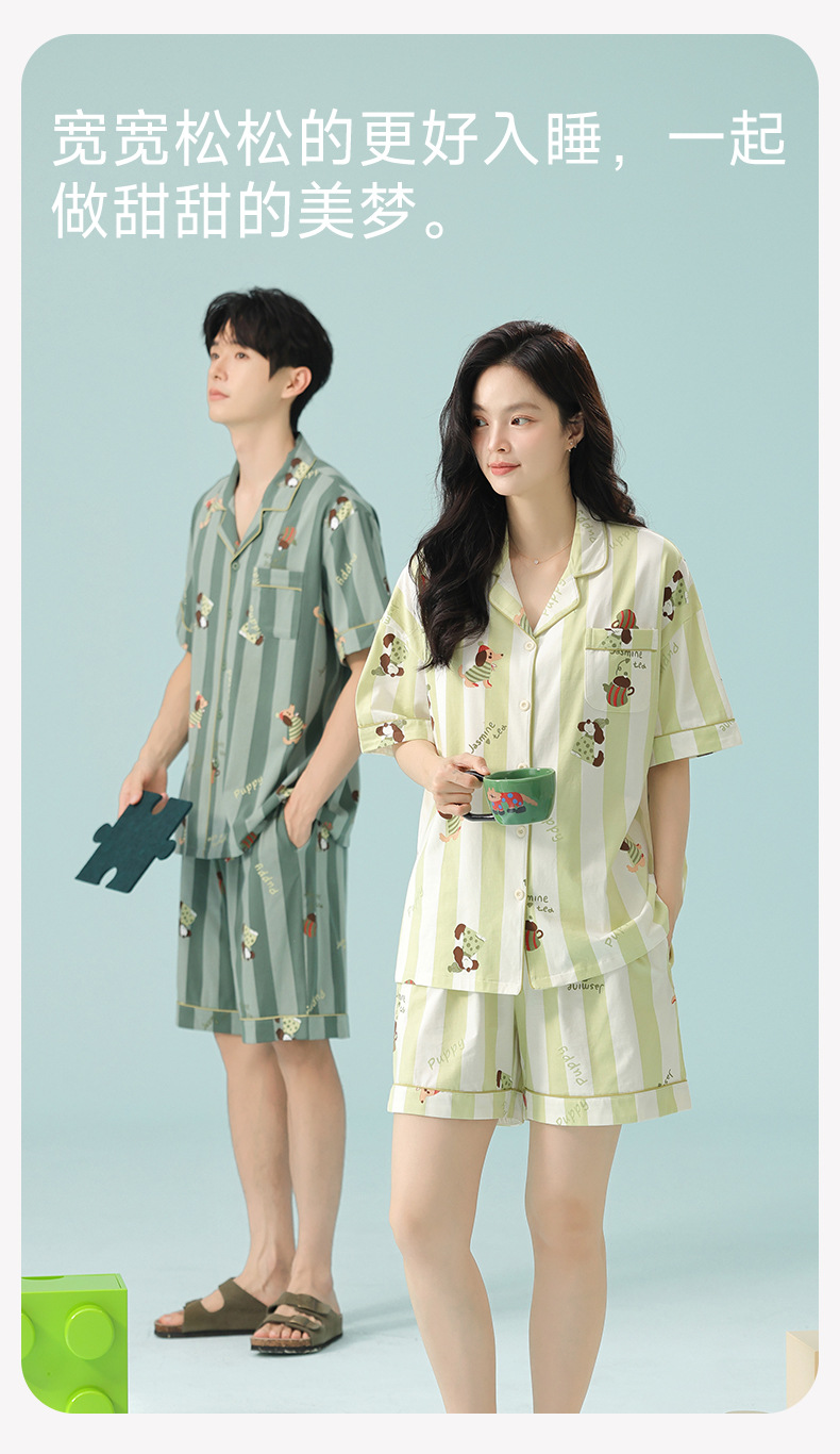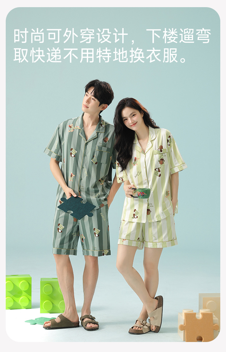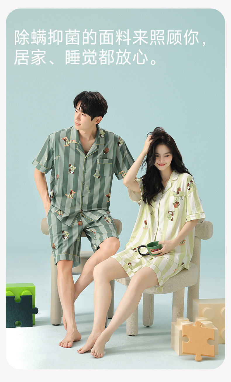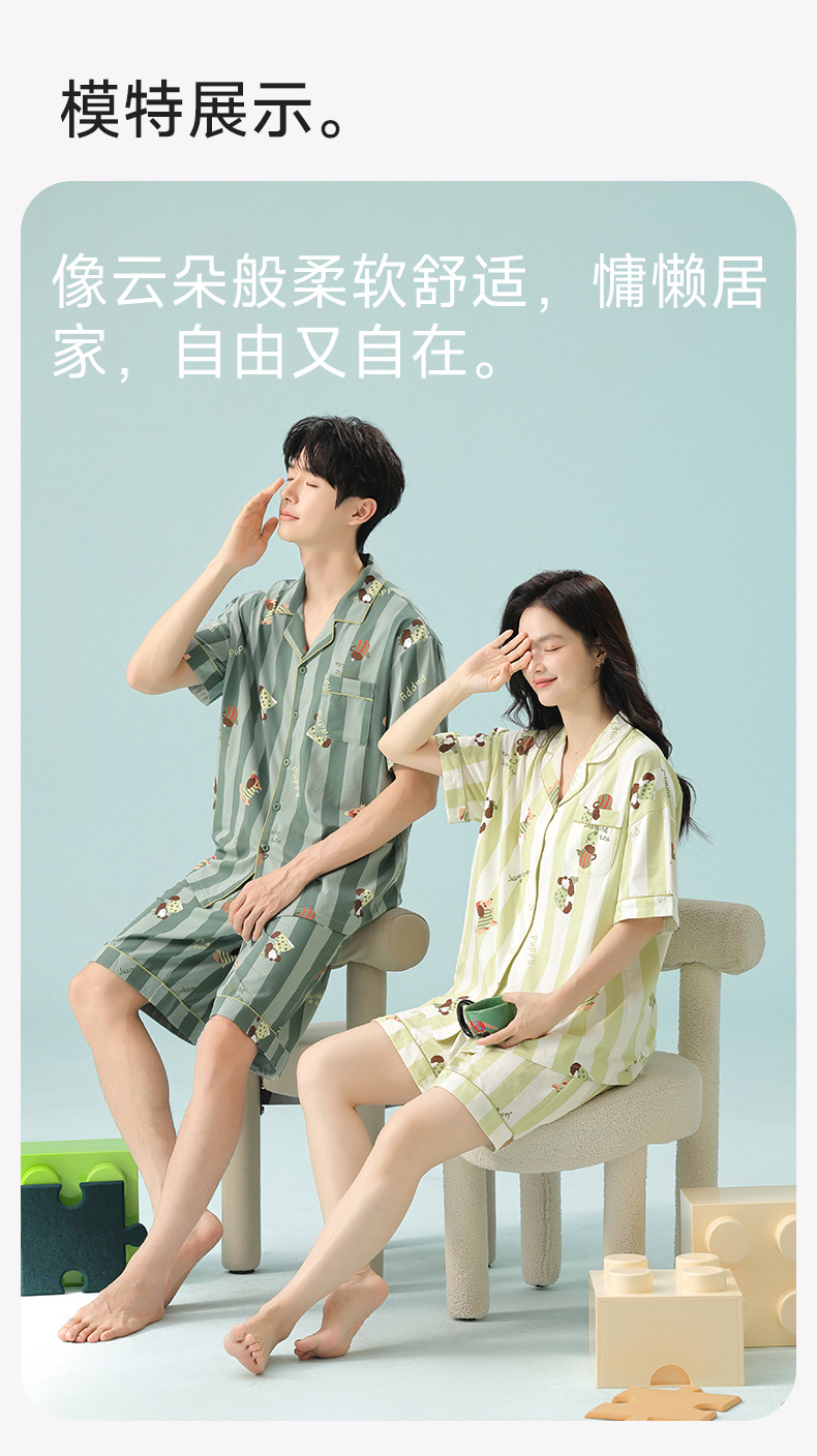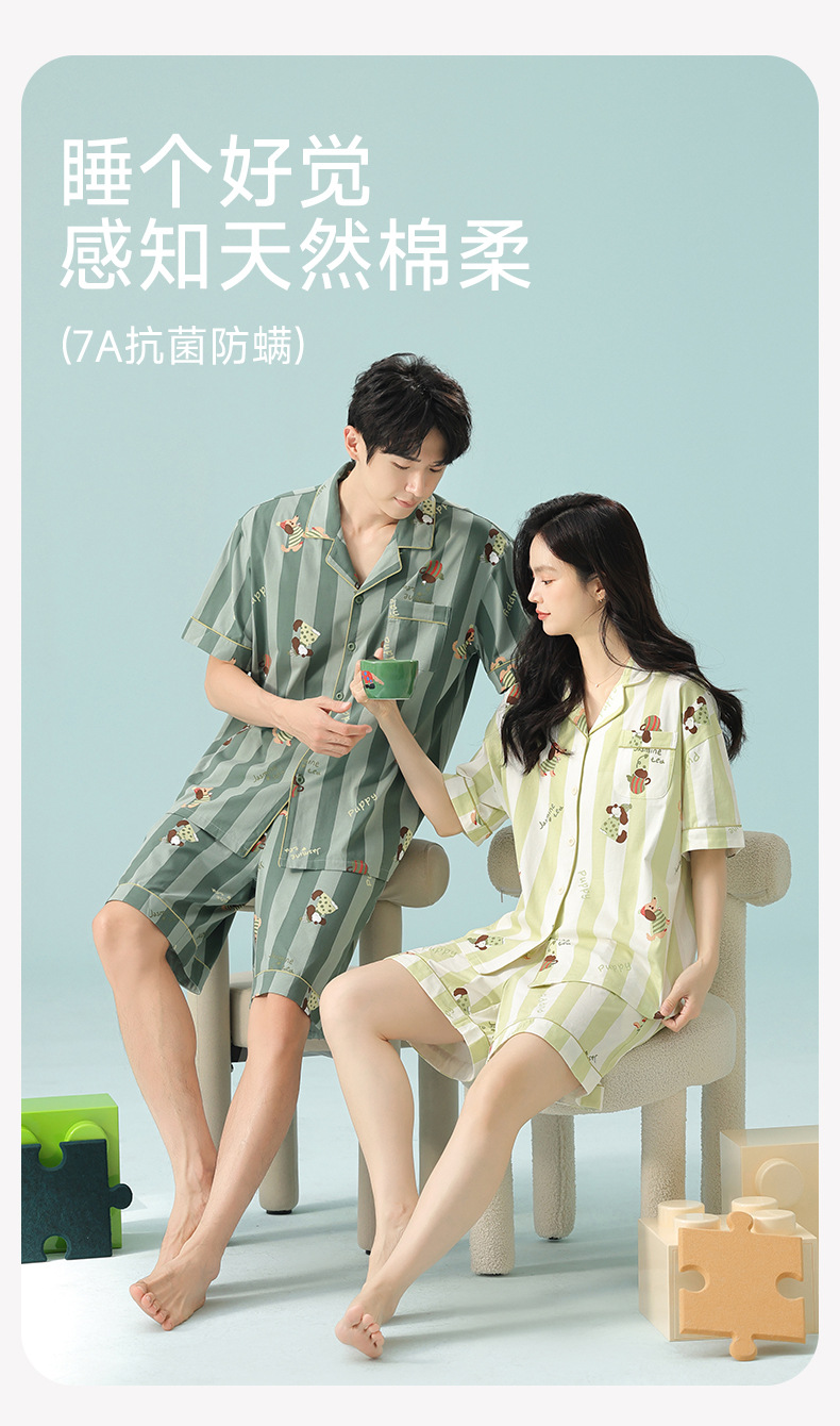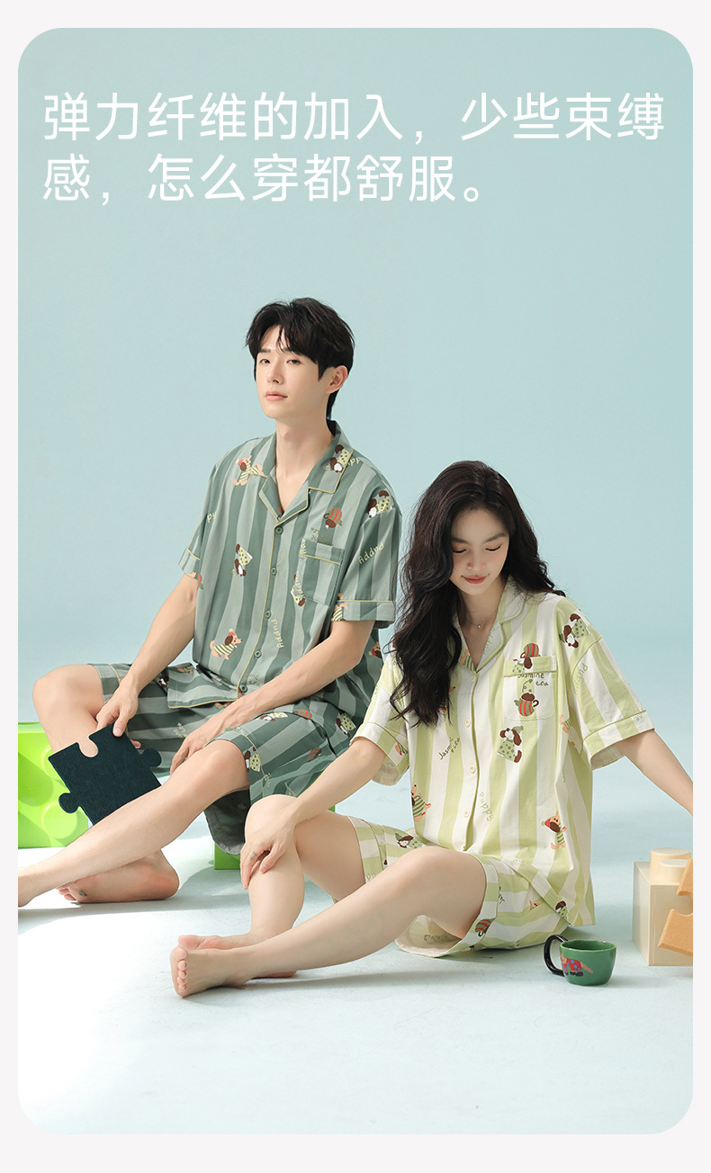 [항균 신장면] 커플 잠옷 여성 봄 여름 얇은 순면 반팔 캐주얼 만화 남성 홈웨어스토어 가기