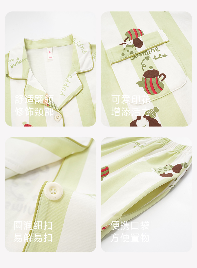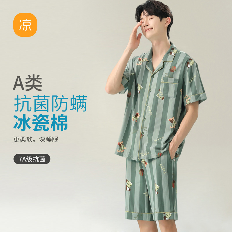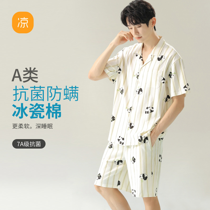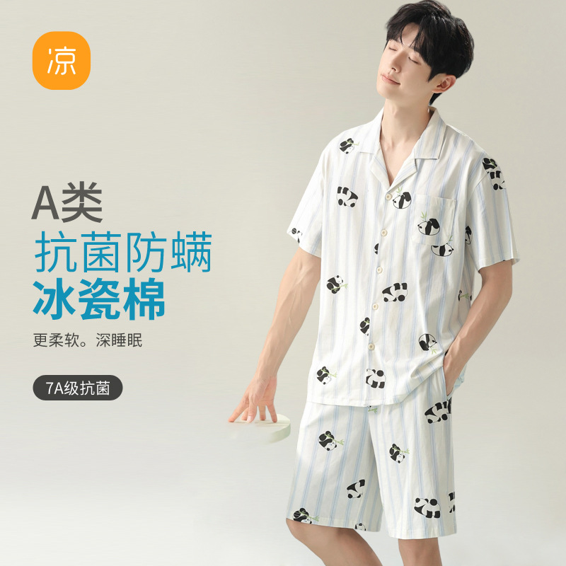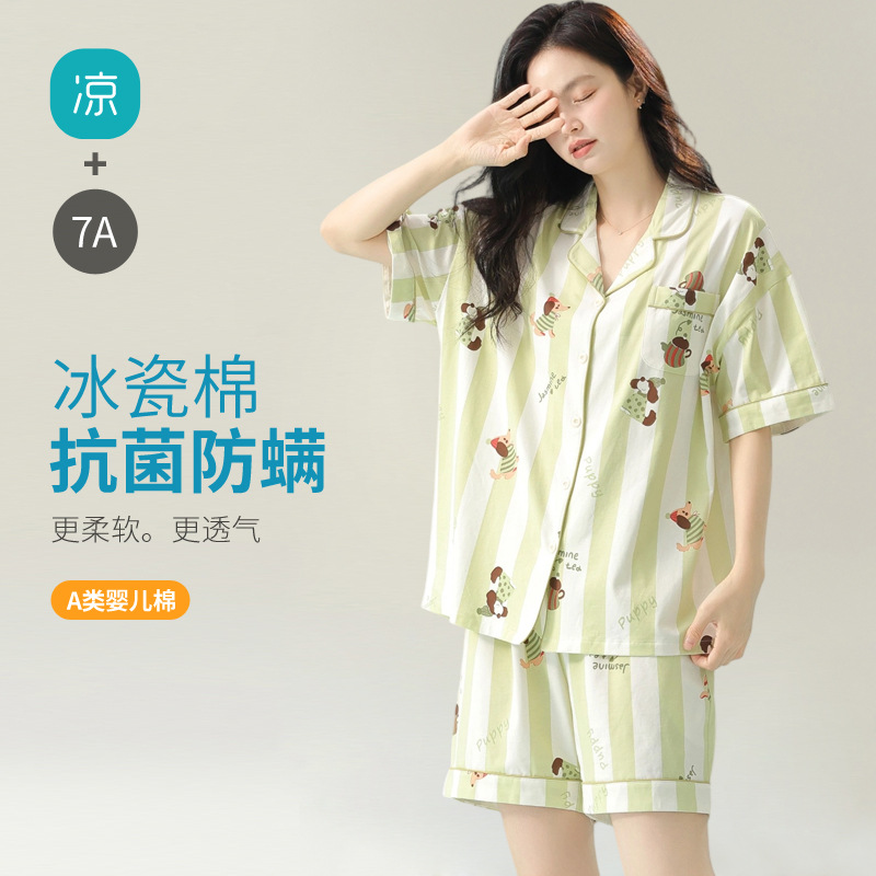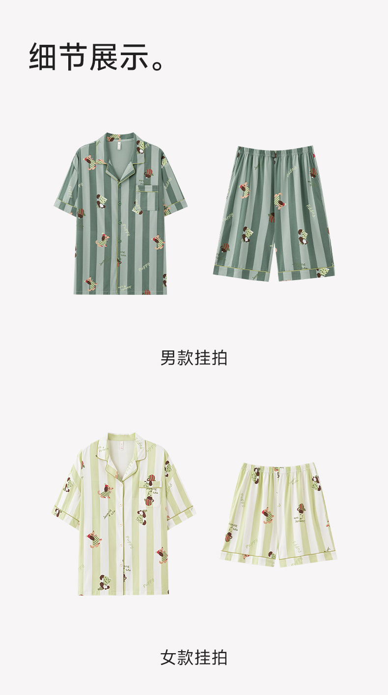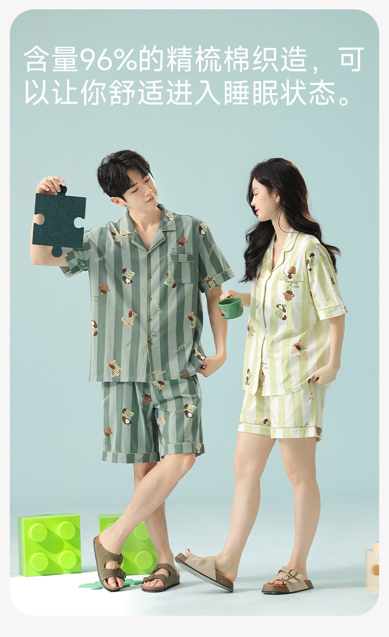[항균 신장면] 커플 잠옷 여성 봄 여름 얇은 순면 반팔 캐주얼 만화 남성 홈웨어스토어 가기