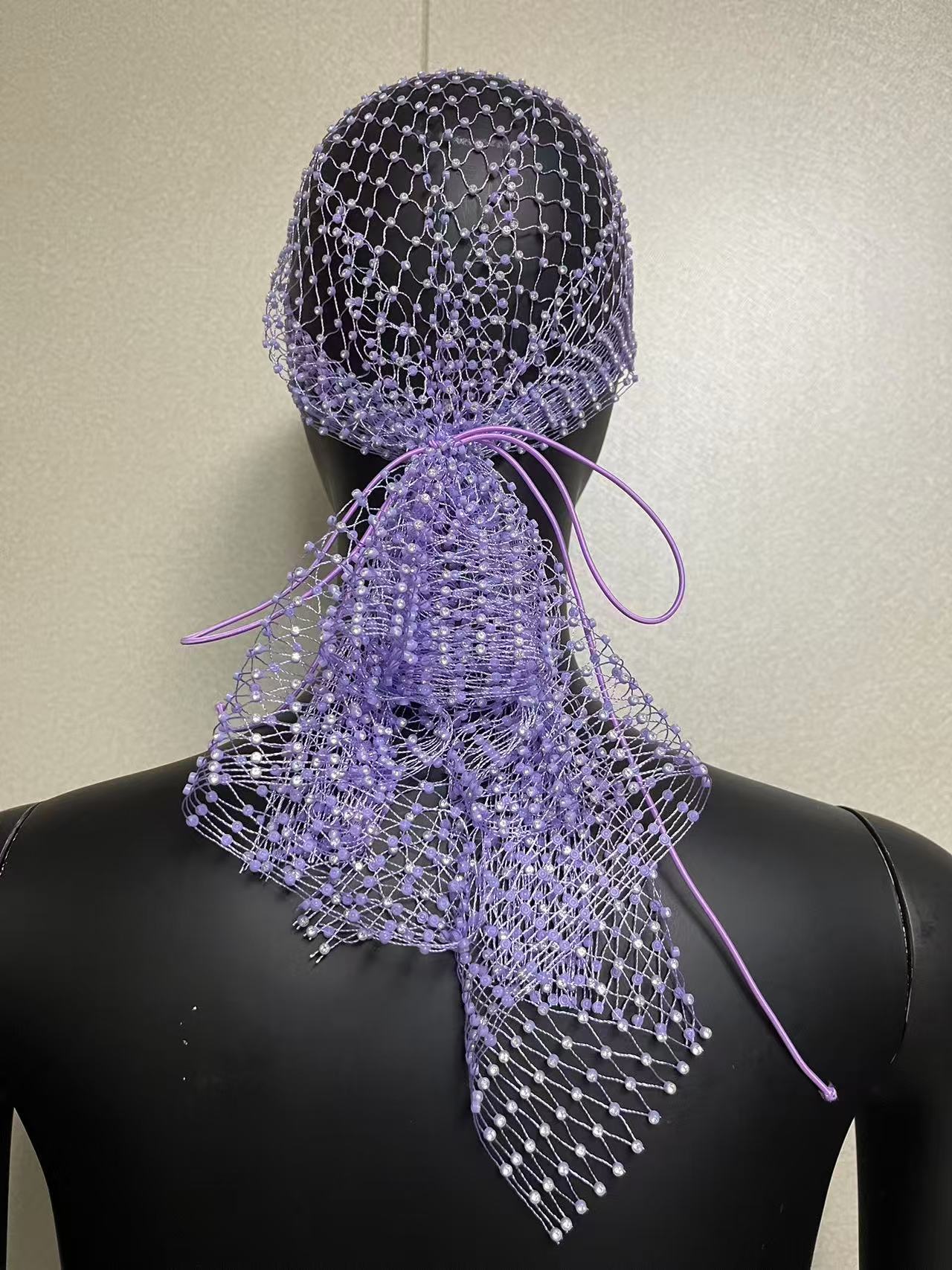 유럽과 미국의 국경 간 Amazon 인기 플래시 다이아몬드 메쉬 해적 모자 터번 나이트 클럽 파티 음악 축제 Fishnet Hair Hat