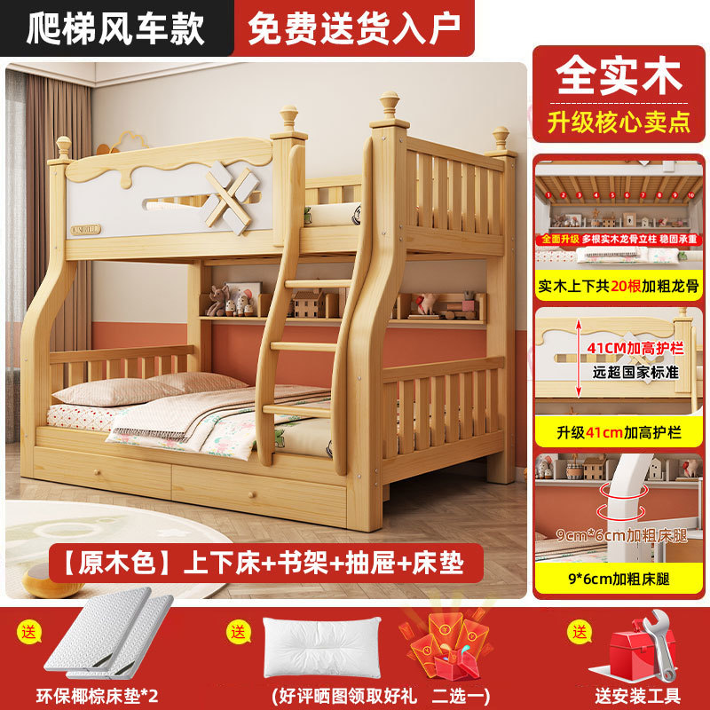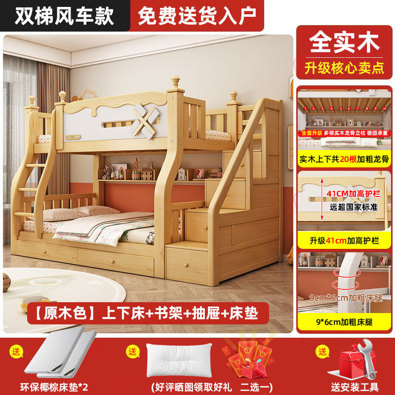 • [설치 포함] 통나무색 사다리 스타일 + 책장 + 서랍 + 매트리스 [대외 무역 품질]