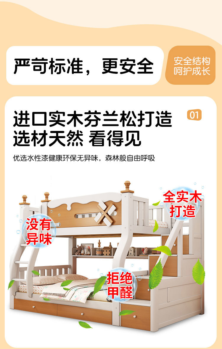 원목 이층침대, 상하 이층침대, 소형 가정용 조합형 어린이 침대, 어린이방 사다리
