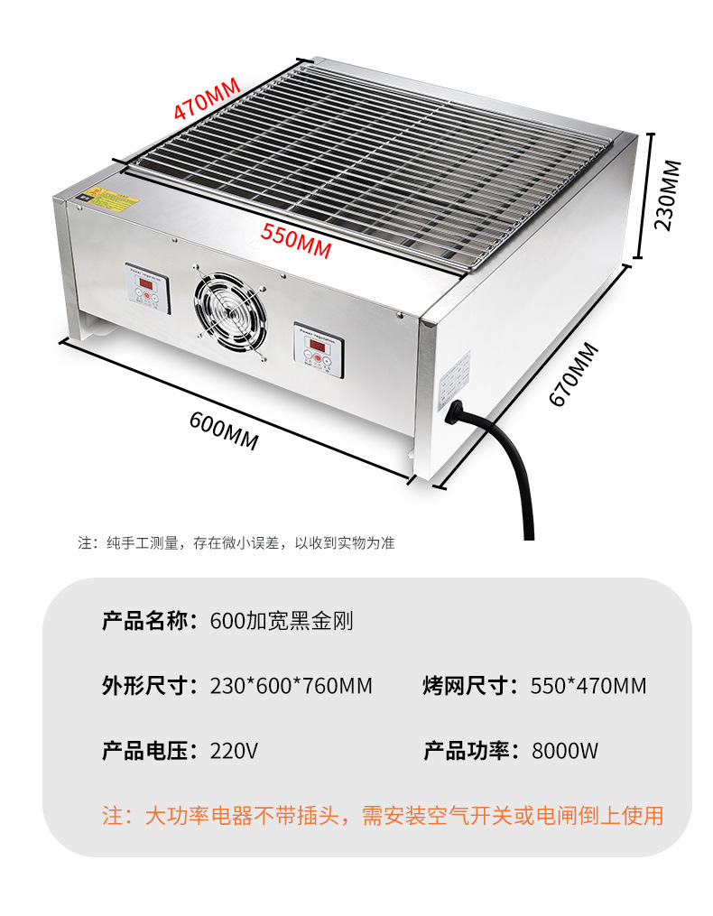 • 600 넓어진 블랙 블랙 다이아몬드 전기 그릴 800℃
