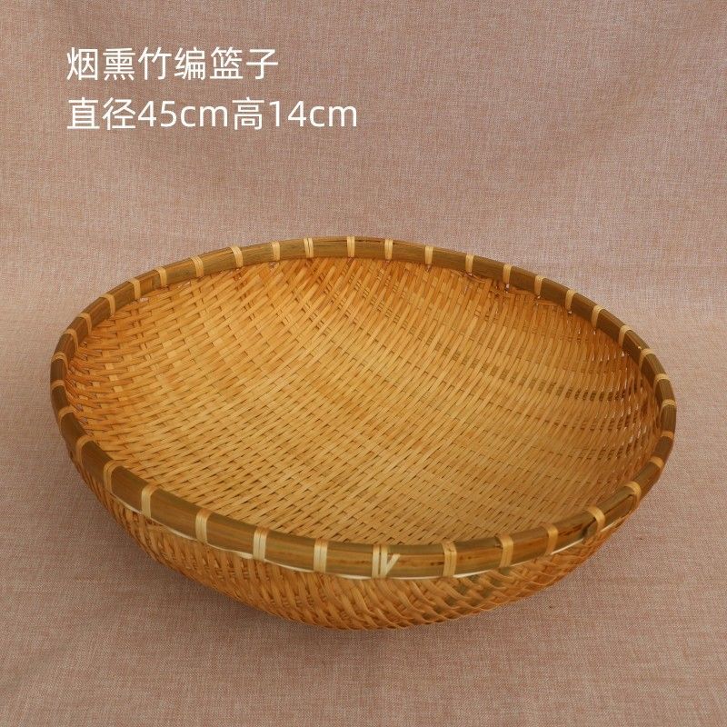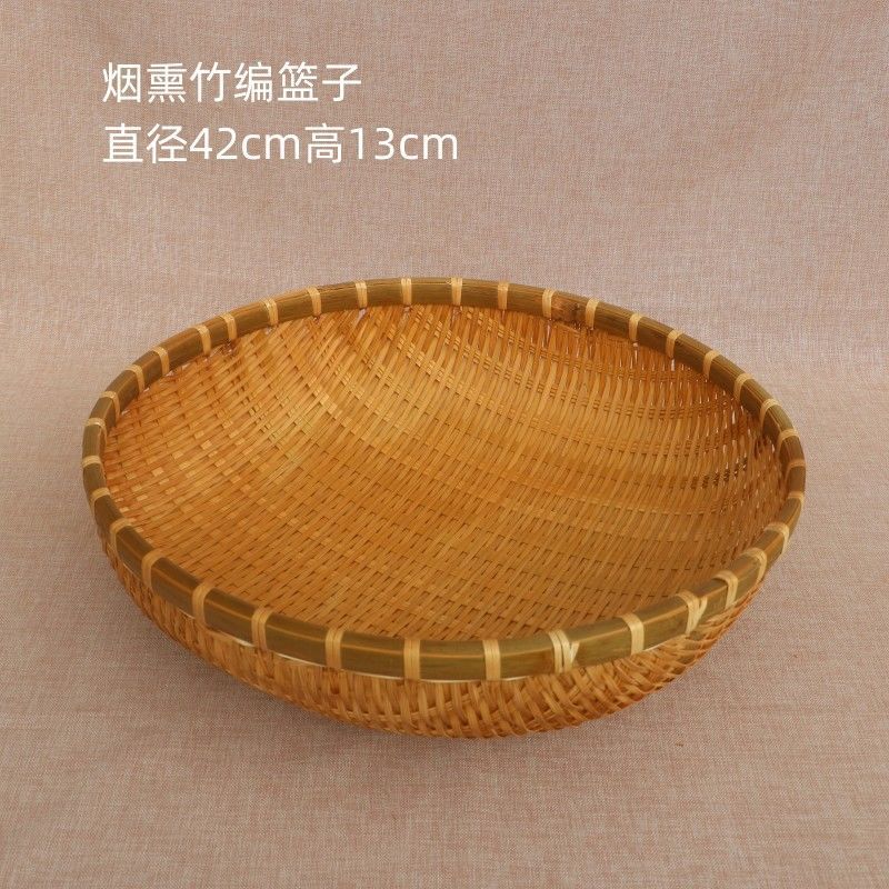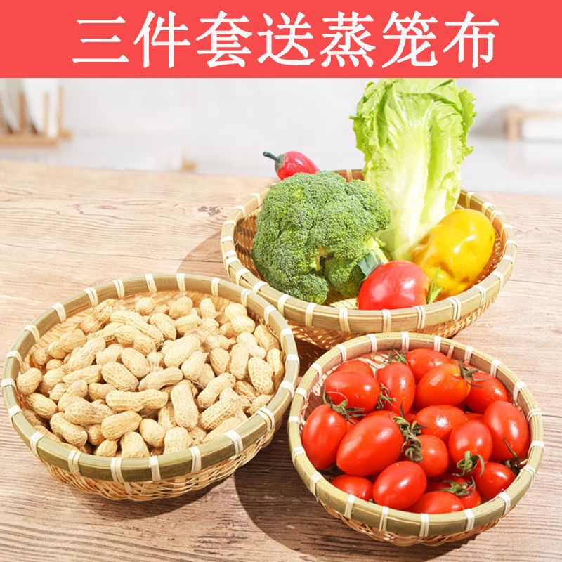 대나무로 짠 찐빵 바구니, 농가용 수제 원형 수납 및 배수 바구니, 구멍이 있는 체가 있는 대나무 바구니스토어 가기