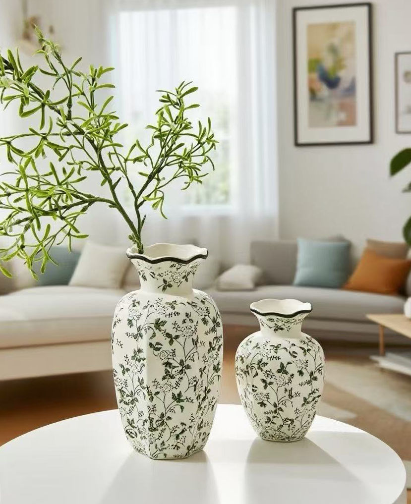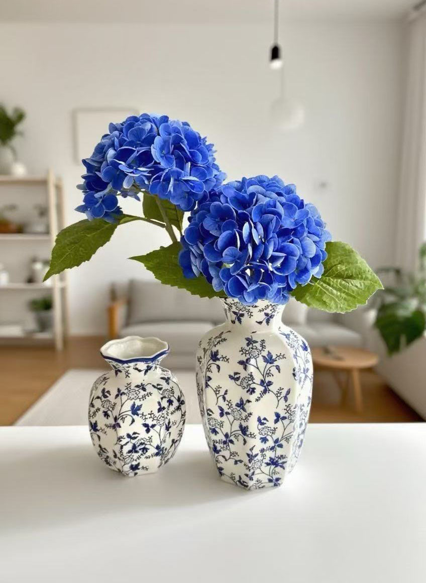 하이 엔드 복고풍 새로운 중국 스타일 손으로 그린 파란색과 흰색 도자기 꽃병 거실 입구 홈 장식 말린 꽃 유니버설스토어 가기