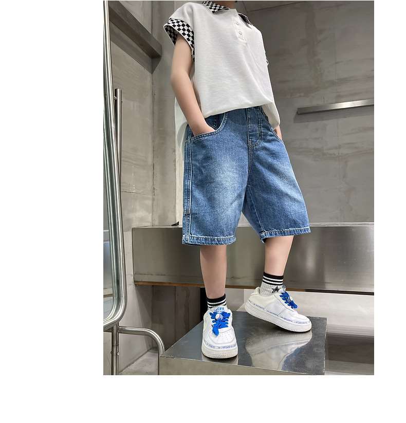 아동복 소년 여름 바지 2025 새로운 스타일 중대형 어린이 여름 소년 데님 반바지 여름 얇은 중간 바지스토어 가기