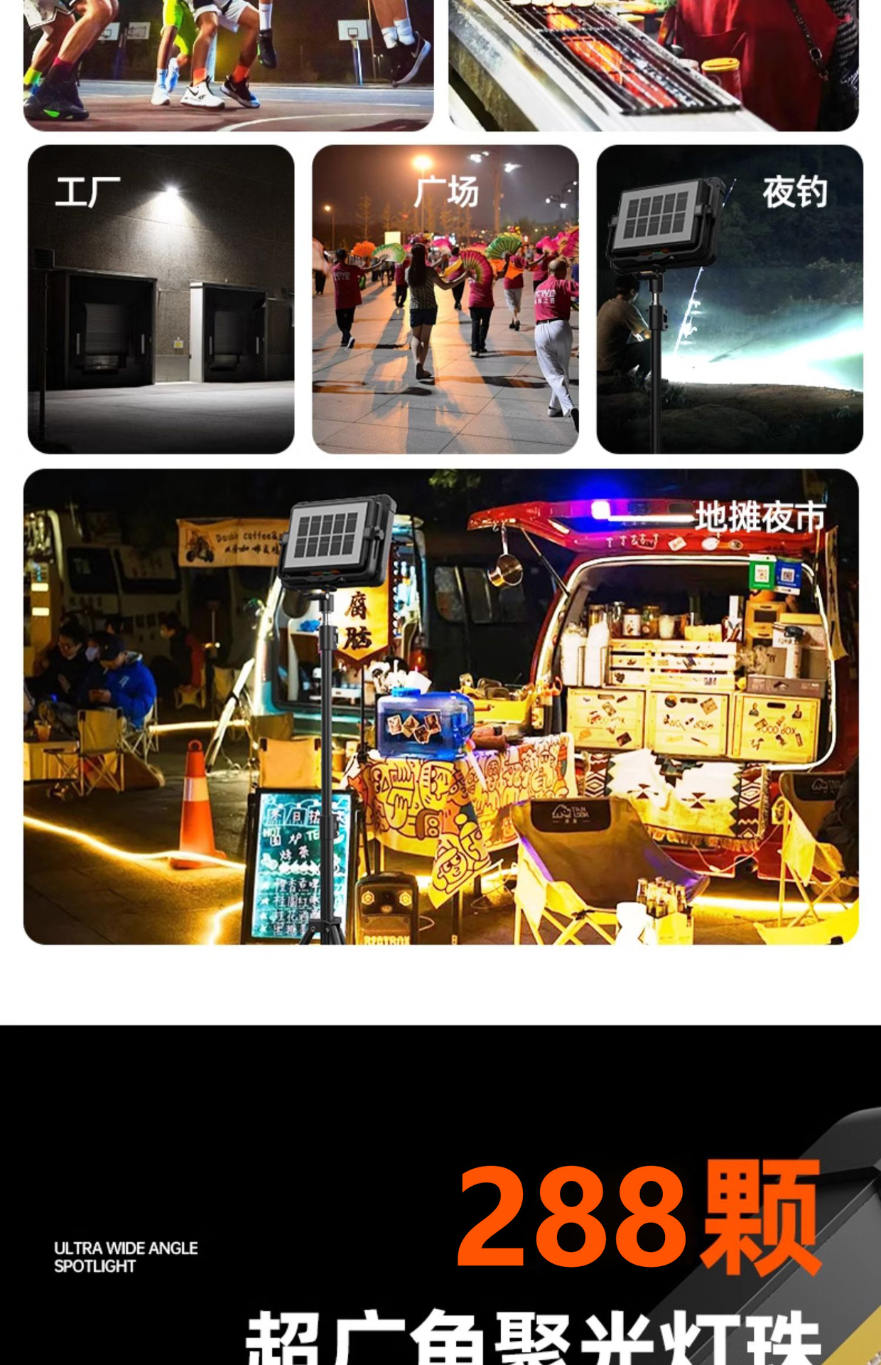 • [브래킷 제외] 태양광 모델 - 9600W 밝은 램프 비드(배터리 수명 9~10시간 이상)