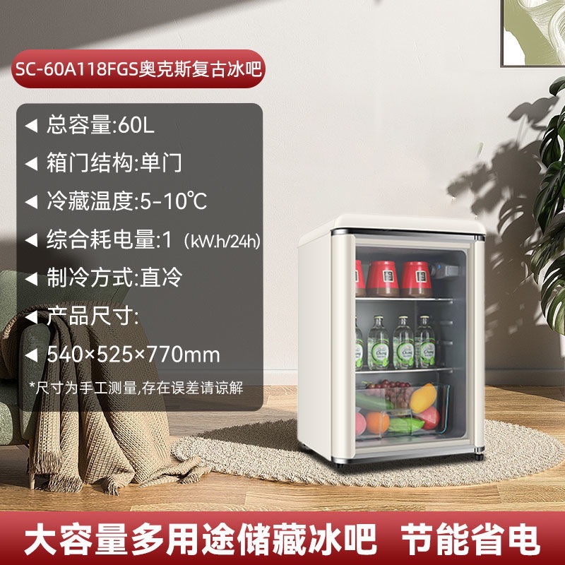 오크스 레트로 아이스 바 홈 소규모 사무실 단일 도어 냉장고 신선 유지 냉동 음료 차 레드 와인 캐비닛