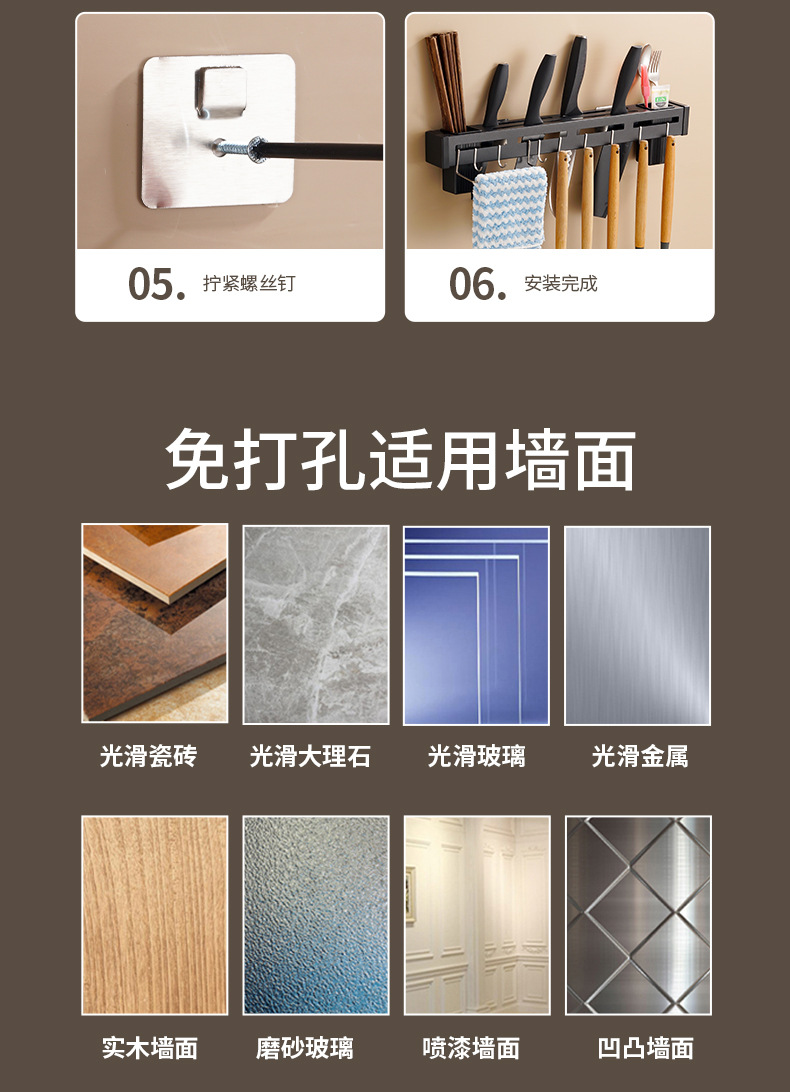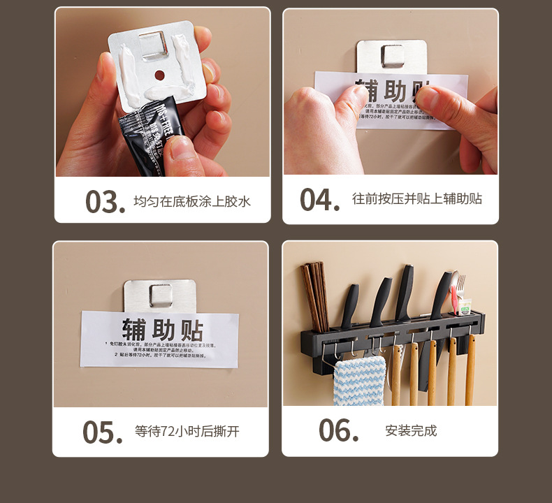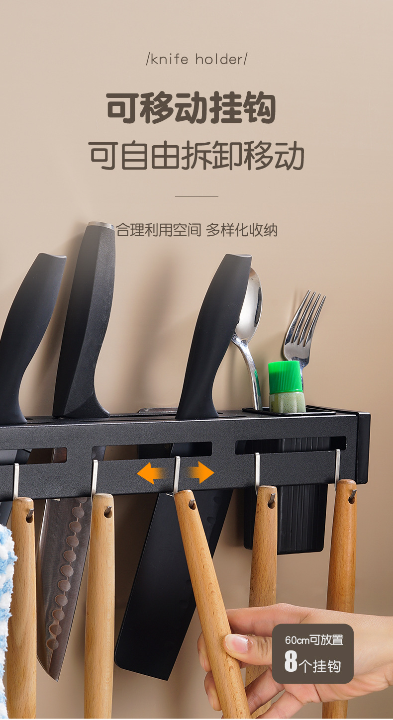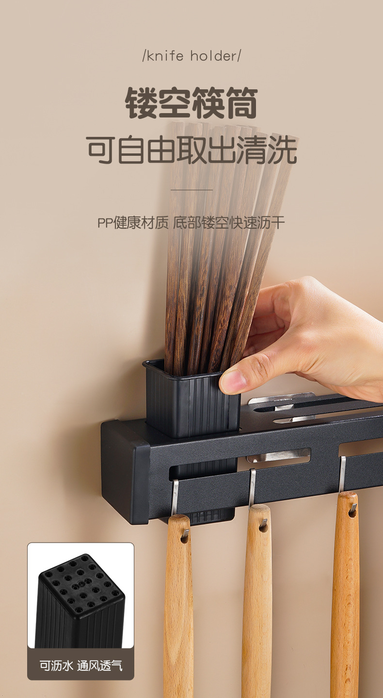 탄소강 칼 홀더 벽걸이 형 젓가락 튜브 칼 다기능 보관함 주방 펀치없는 벽걸이 형 랙 공장 직접 판매