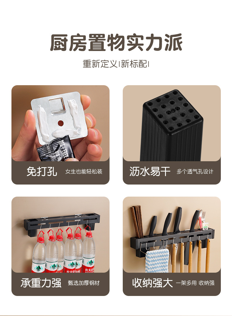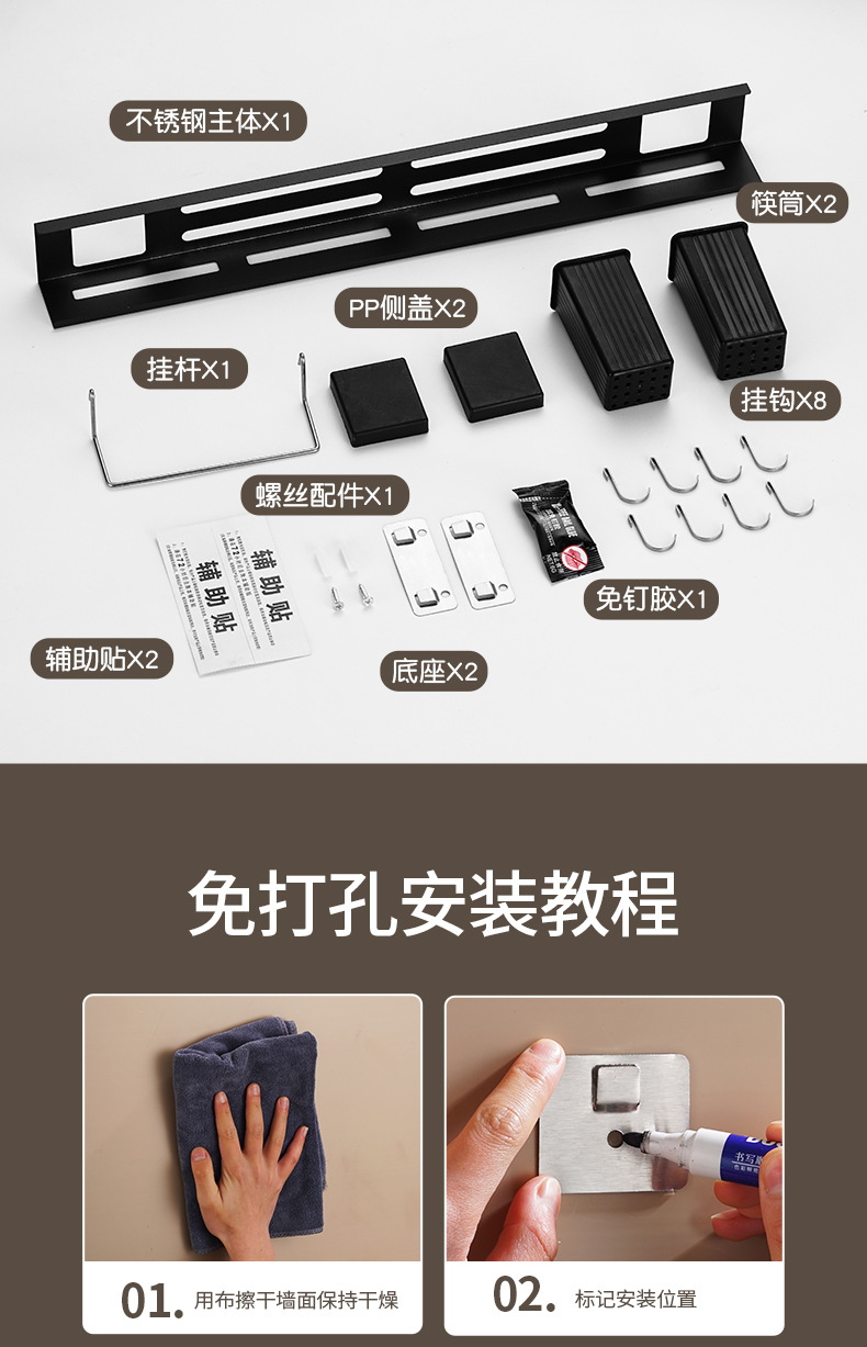 탄소강 칼 홀더 벽걸이 형 젓가락 튜브 칼 다기능 보관함 주방 펀치없는 벽걸이 형 랙 공장 직접 판매스토어 가기