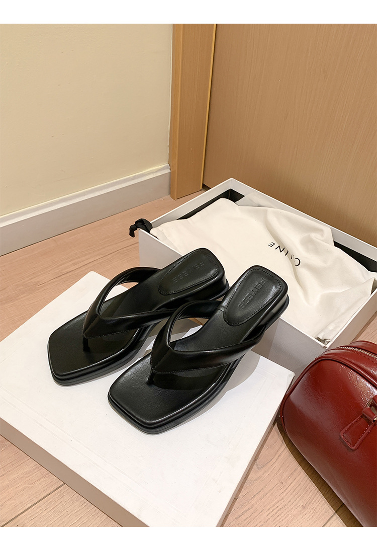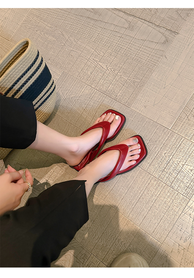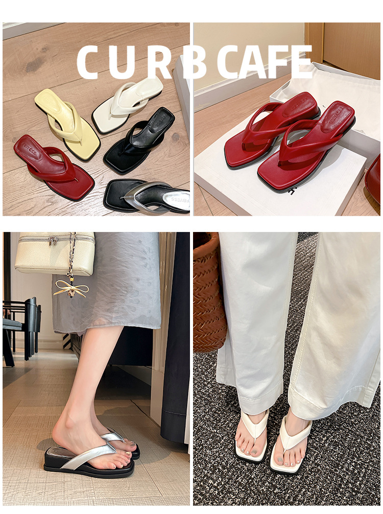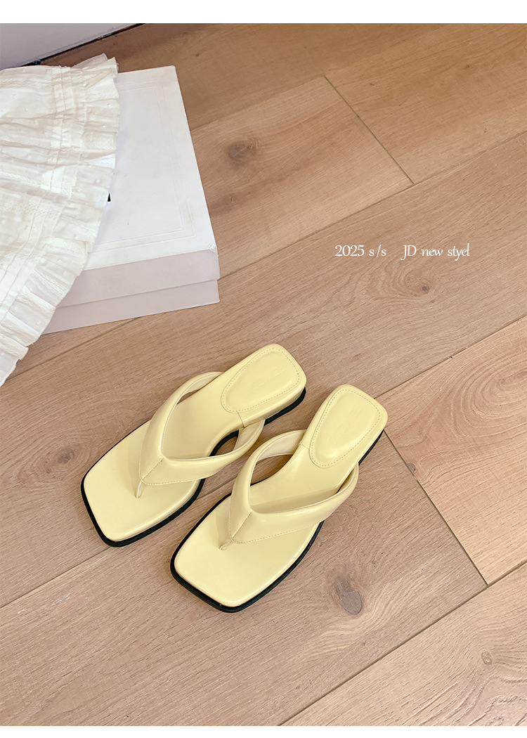 2025년 여름 신상 패션 외출용 가죽 스퀘어토 쪼리 샌들 여성 비치 슬리퍼 트렌디스토어 가기