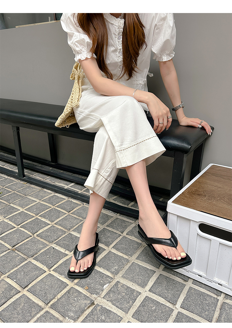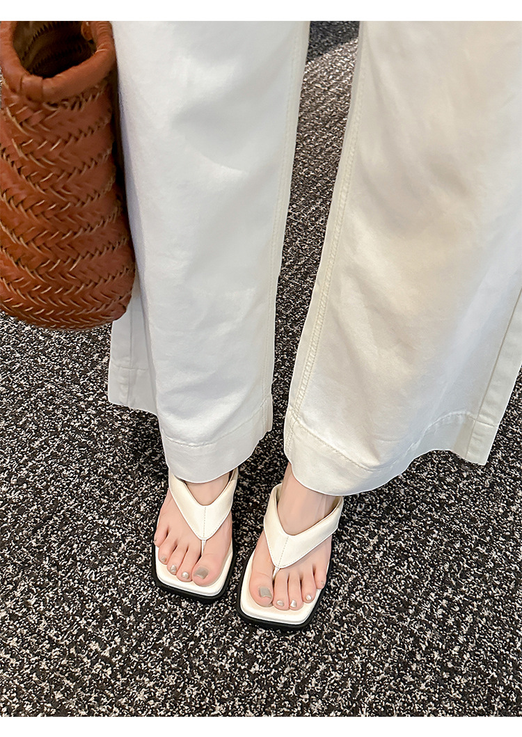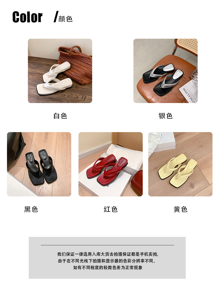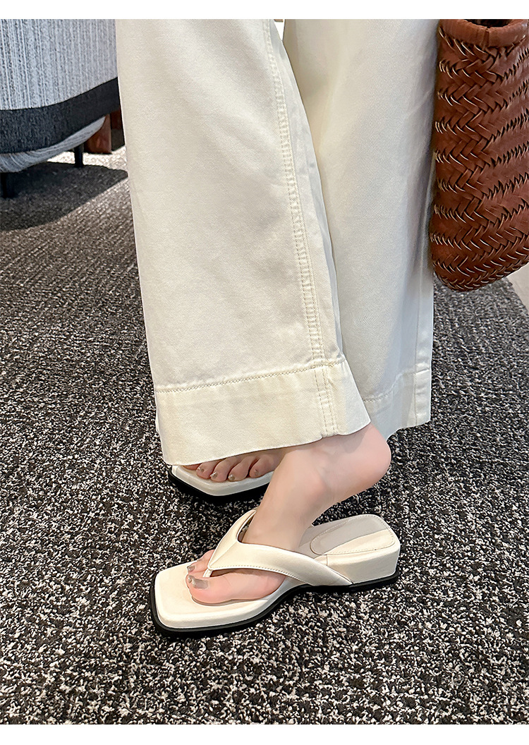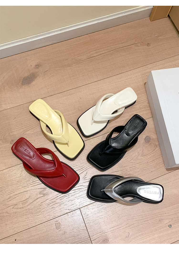 2025년 여름 신상 패션 외출용 가죽 스퀘어토 쪼리 샌들 여성 비치 슬리퍼 트렌디스토어 가기