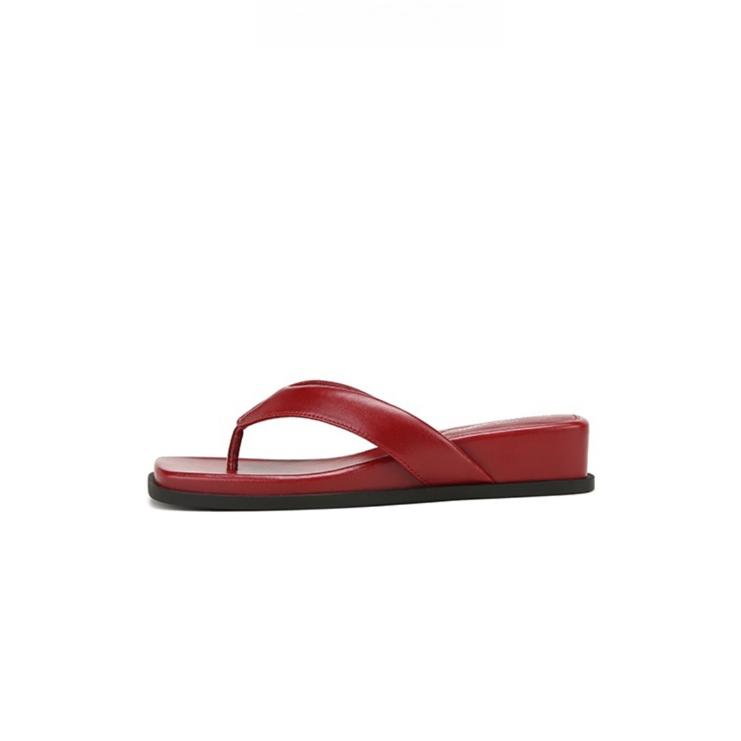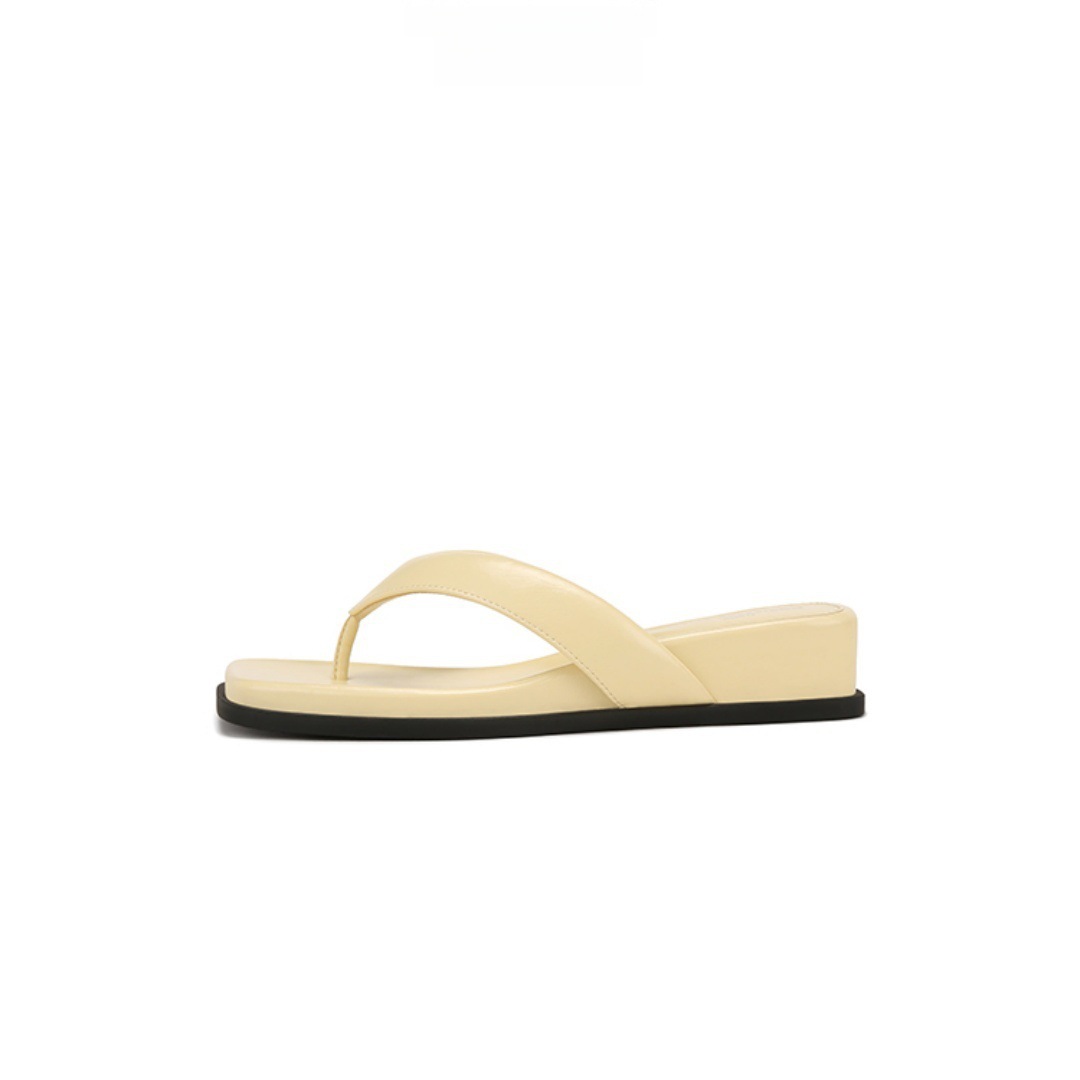 2025년 여름 신상 패션 외출용 가죽 스퀘어토 쪼리 샌들 여성 비치 슬리퍼 트렌디