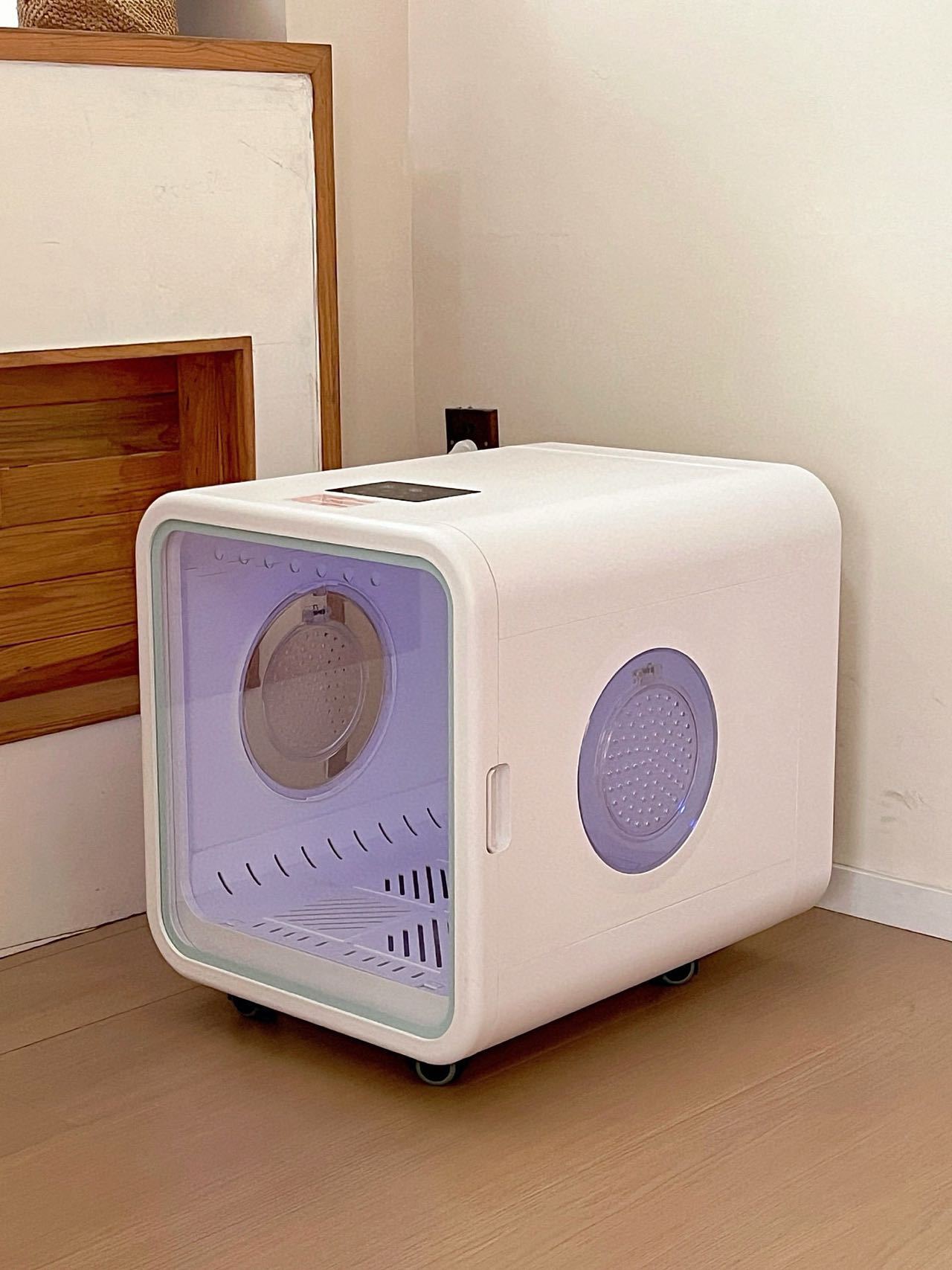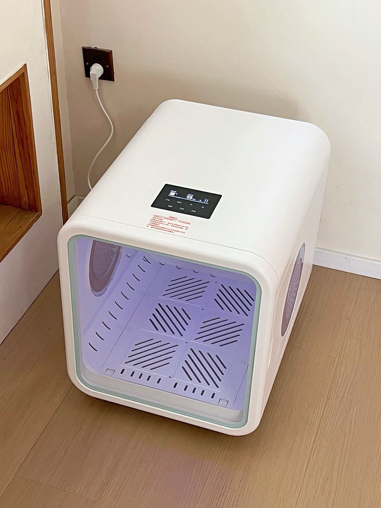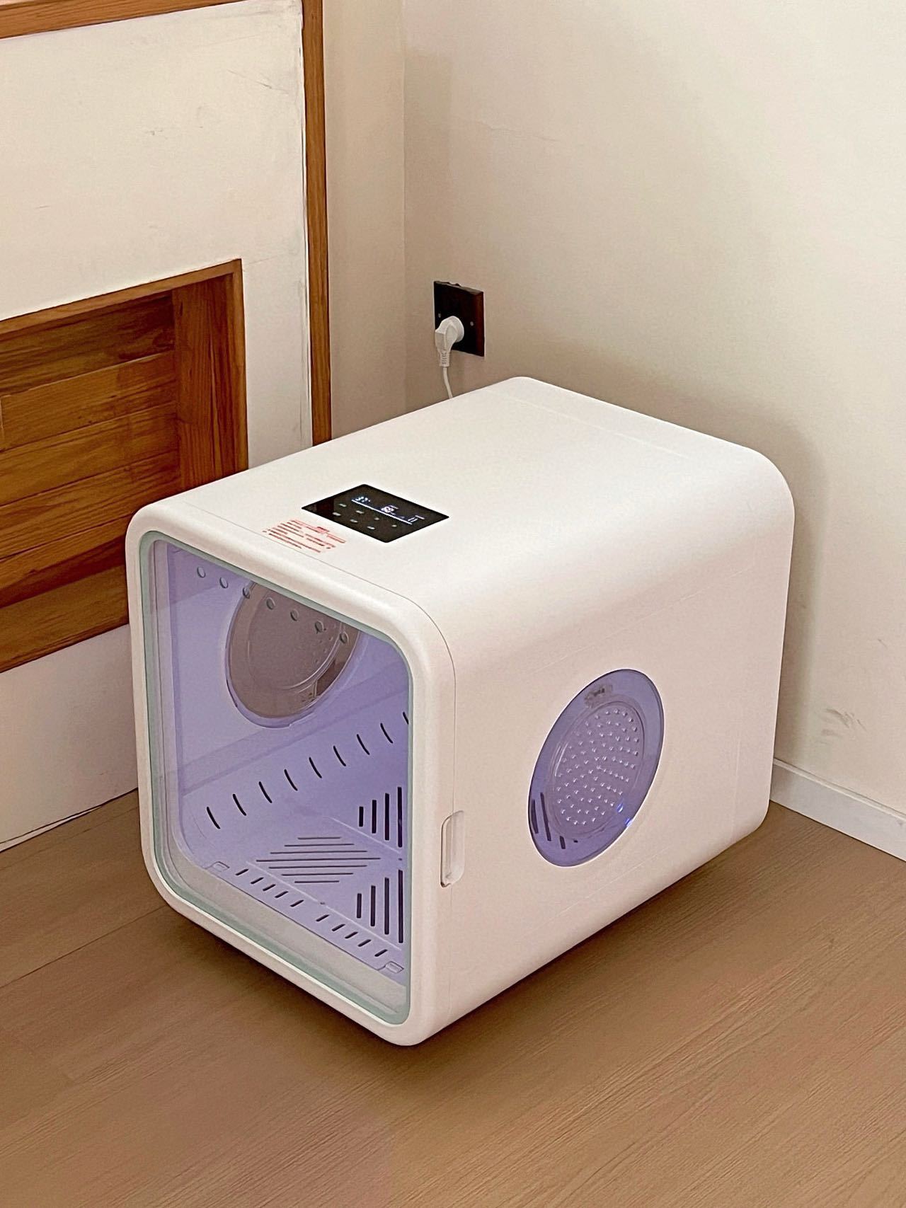 以前给猫吹毛像“人猫大战”,现在丢进烘干箱,我刷手机它吹风,养宠幸福感直接拉满!家里有毛孩子的,闭眼冲不亏