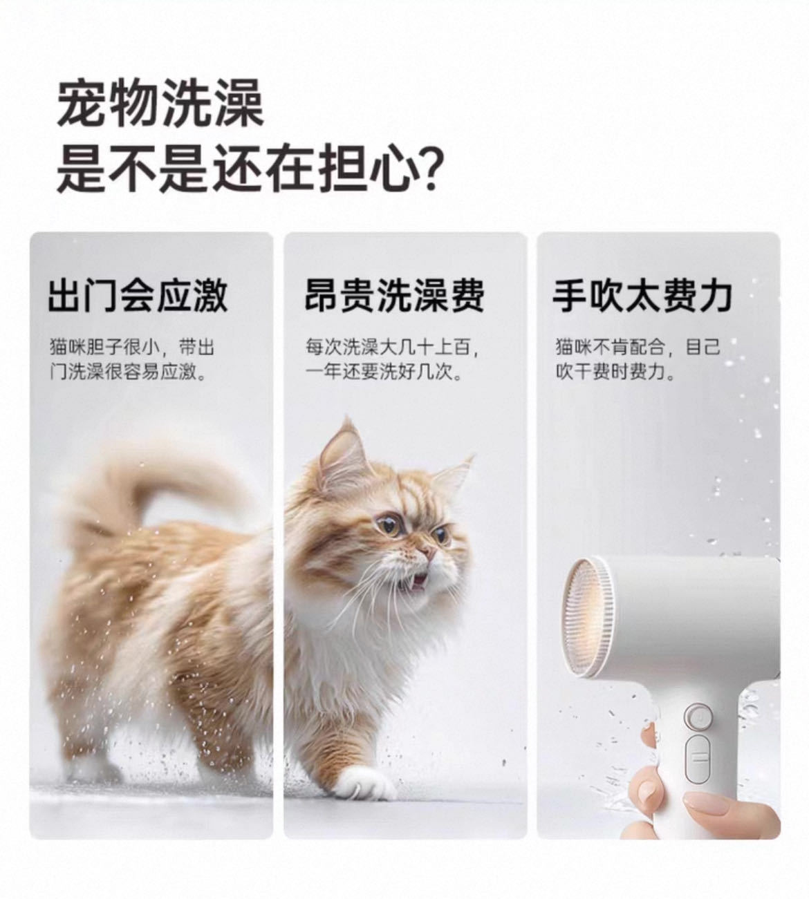 再也不用举着吹风机追猫跑,解放双手+省时间,养宠幸福感飙升!