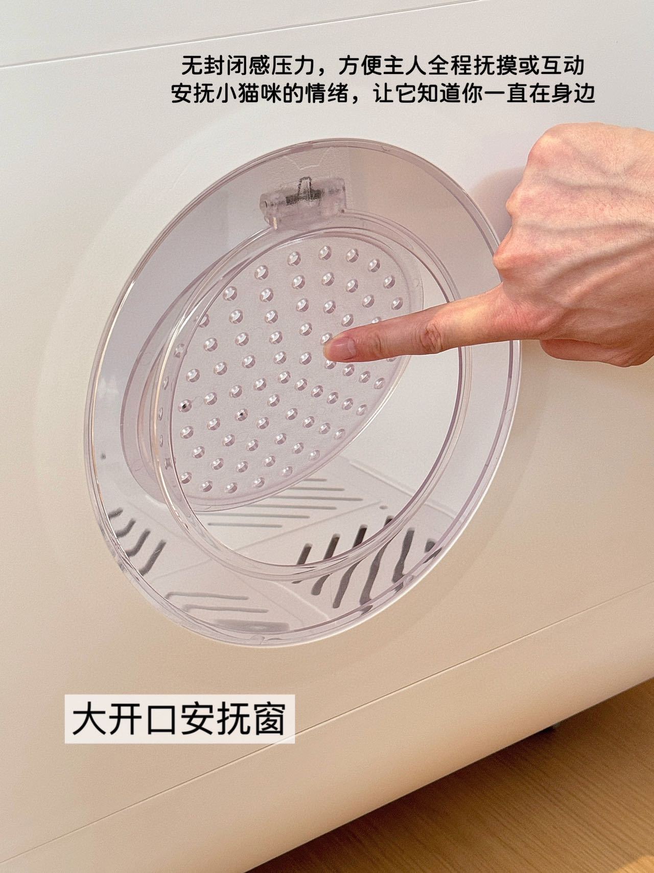 无封闭感压力,方便主人全程抚摸或互动,安抚小猫咪的情绪,让它知道你一直在身边