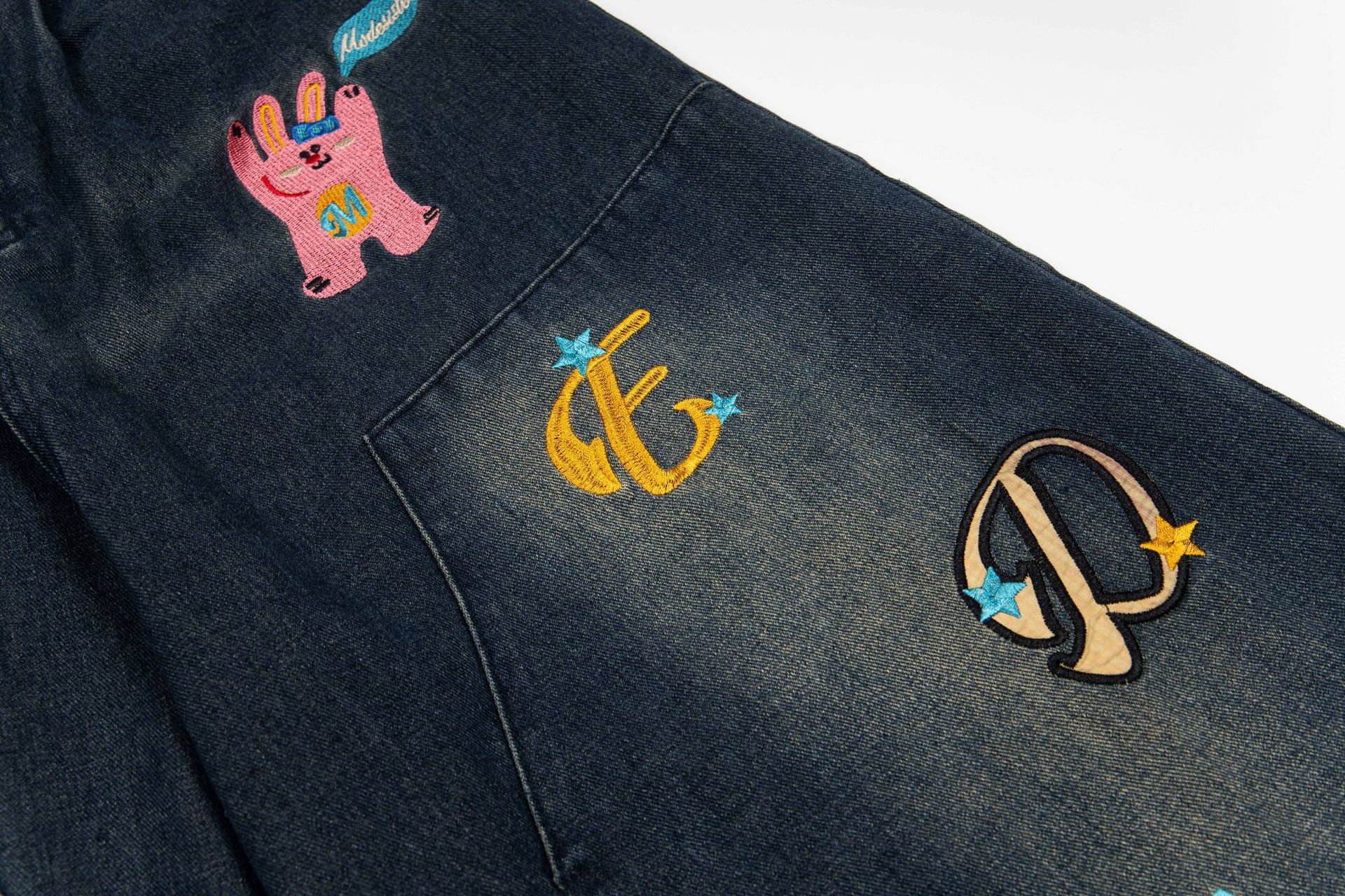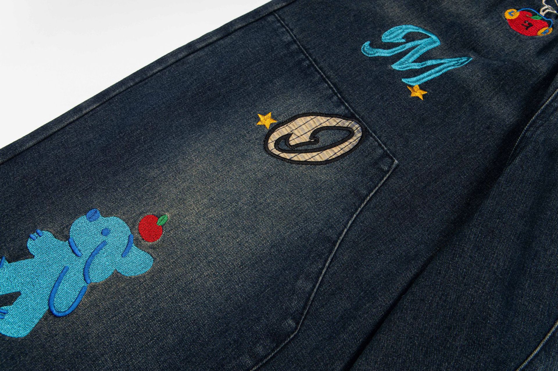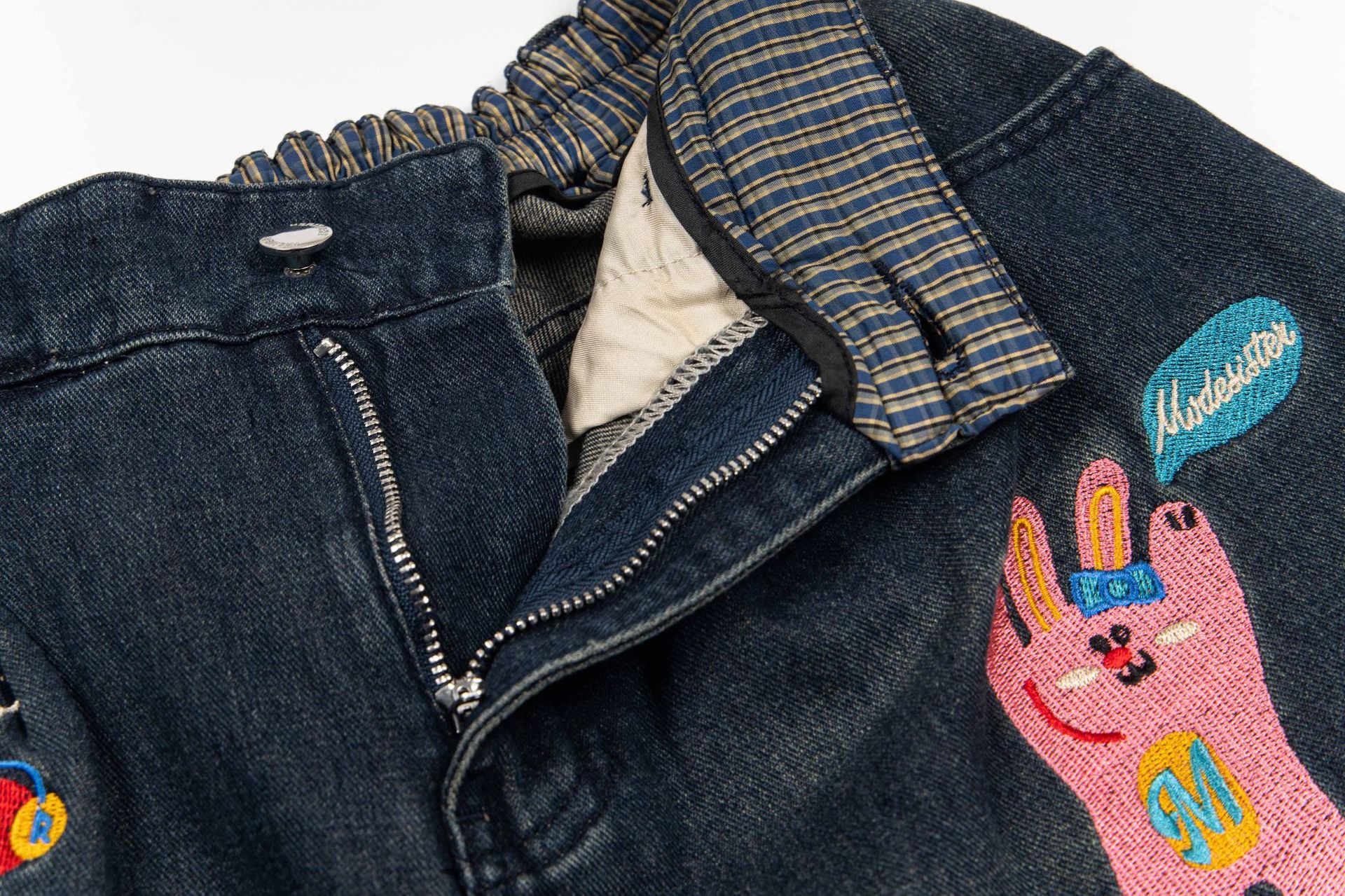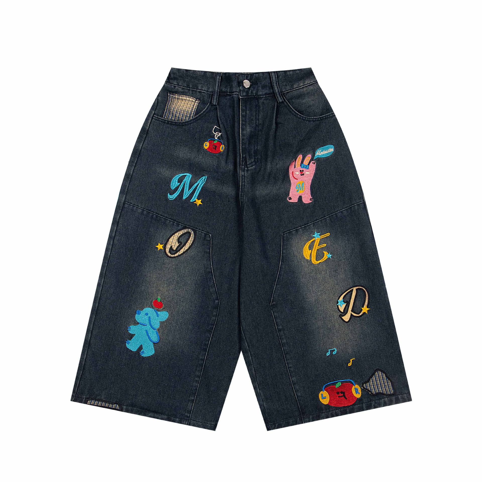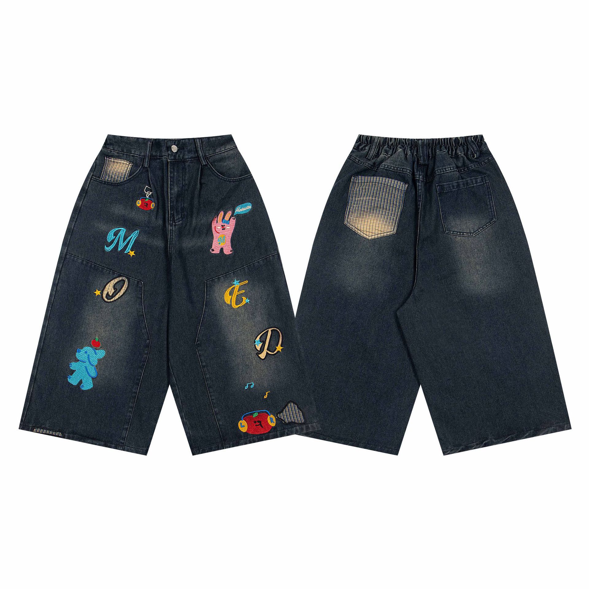 여름 디자인의 여성용 아메리칸 레트로 재미있는 만화 프린트 7부 청바지 루즈한 스트레이트 와이드 레그 반바지스토어 가기
