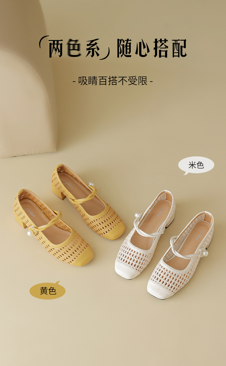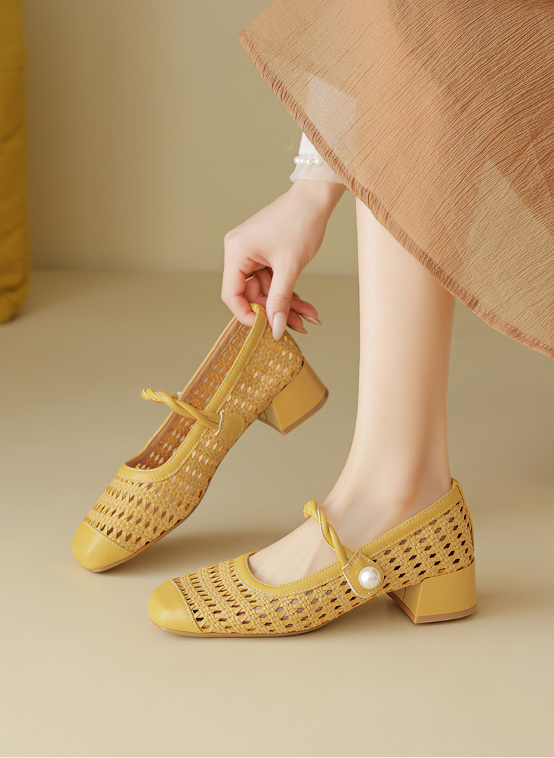 여성을위한 Augushiden 짠 메리 제인 신발 2025 새로운 여름 겉옷 스커트 싱글 신발 중공 노란색 샌들