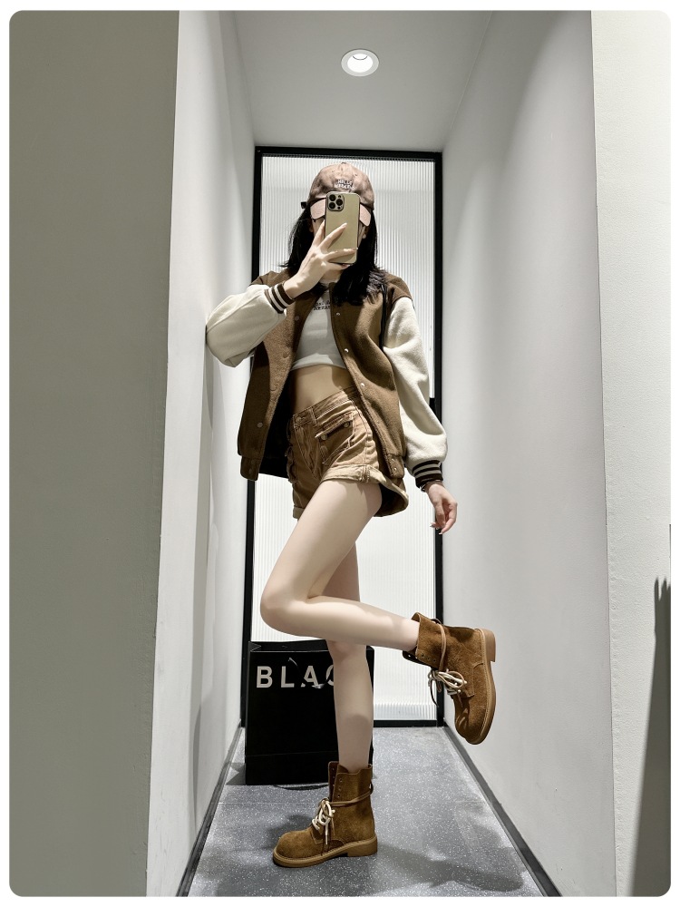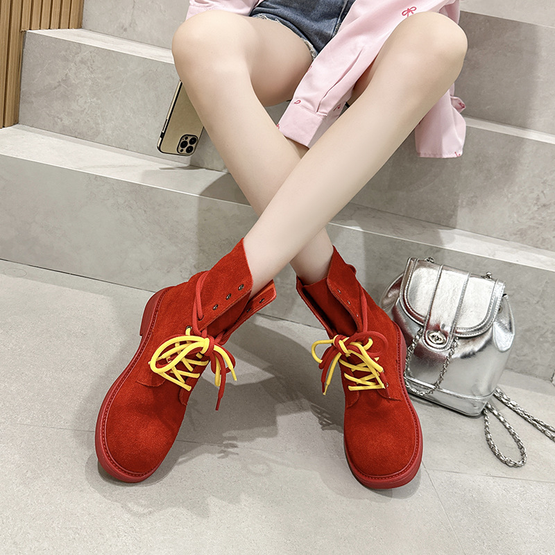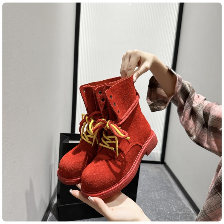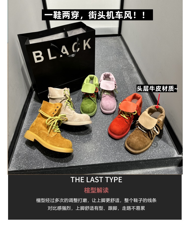여성을위한 1 층 소 가죽 마틴 부츠 2025 여름 새로운 유럽과 미국 스타일의 얇은 통기성 다목적 더블 스트랩 오토바이 부츠스토어 가기