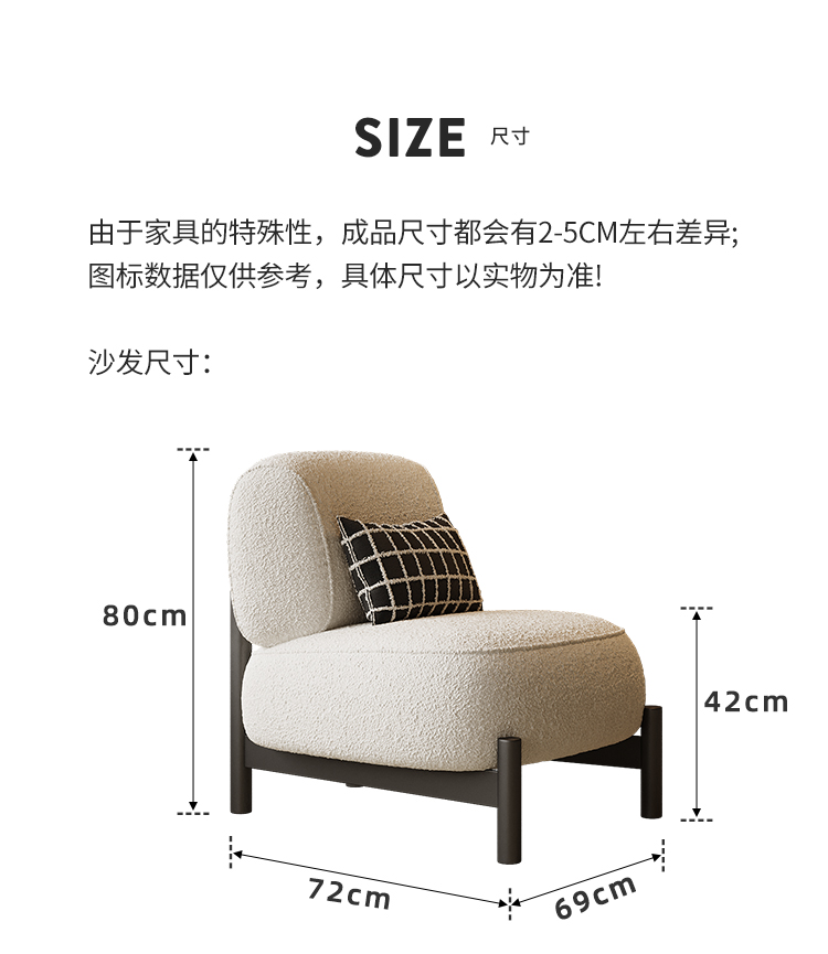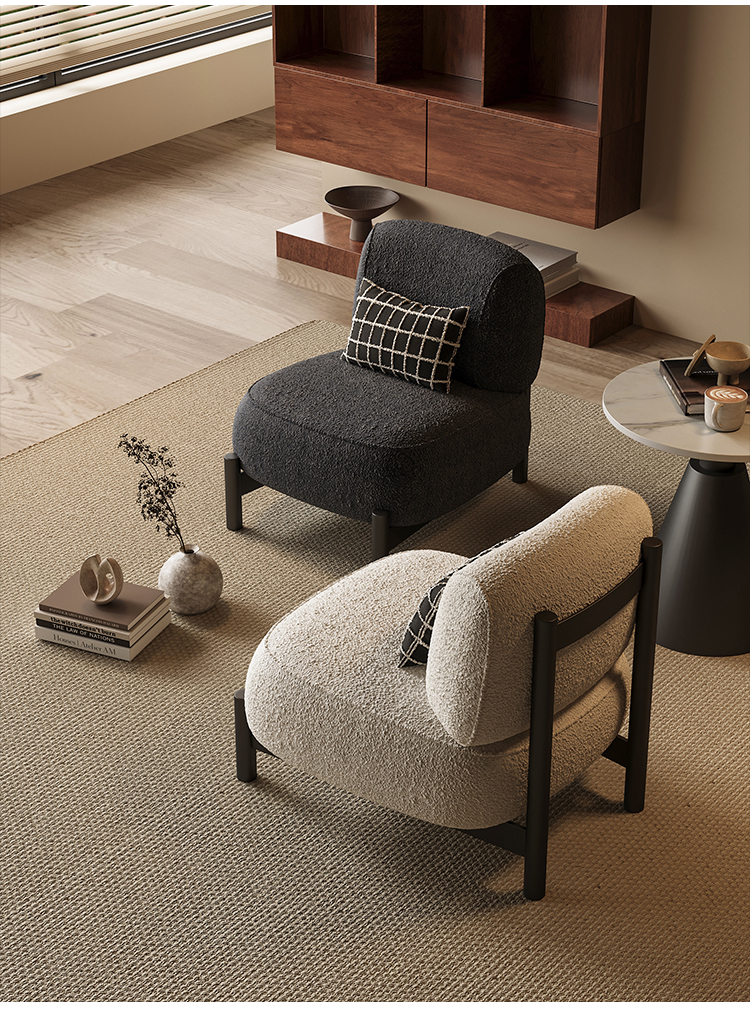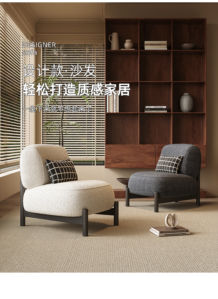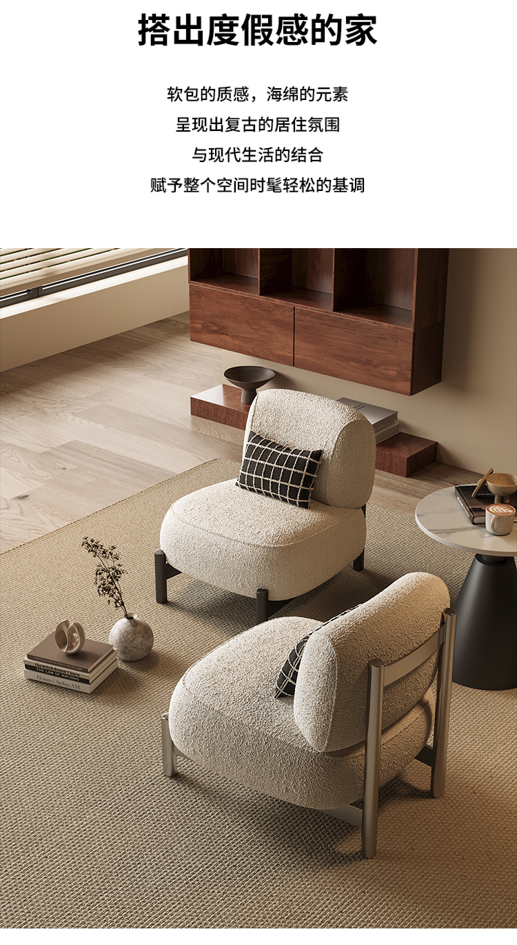 크림색 중세 스타일 거실 싱글 소파 디자이너 거실 미용실 리셉션 패브릭 셰르파 라운지 의자