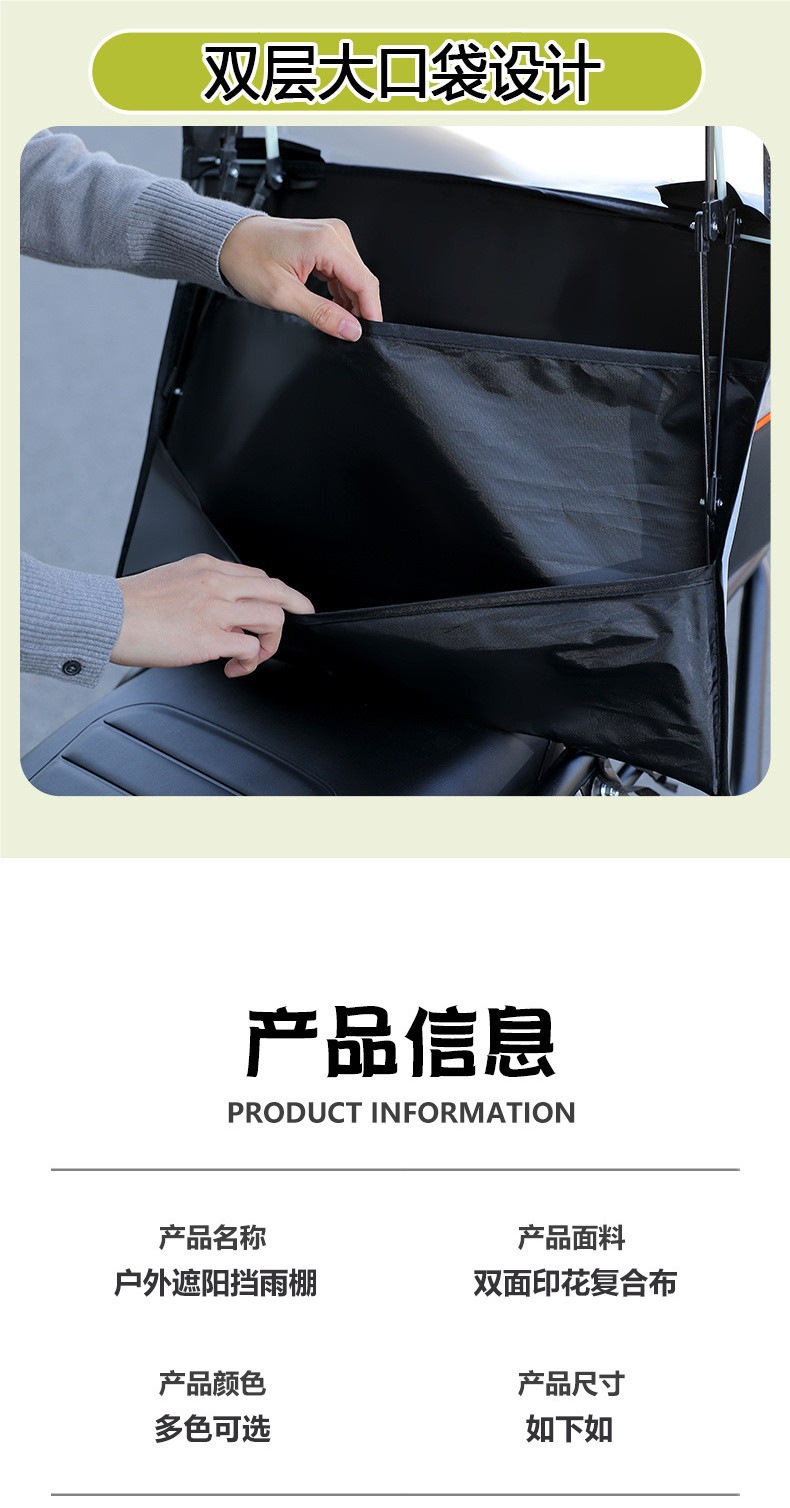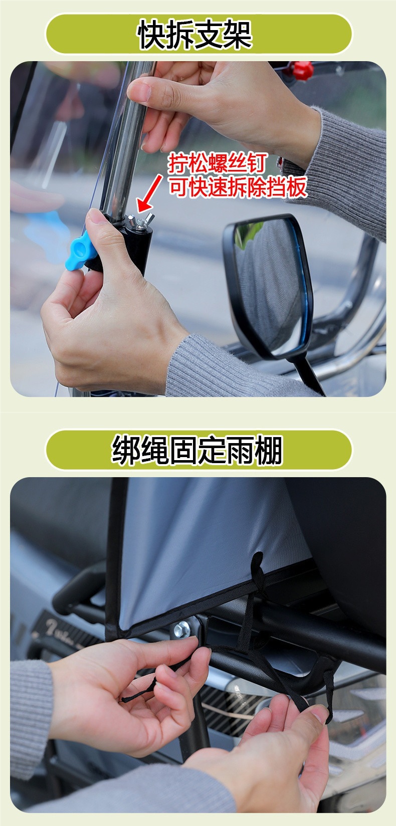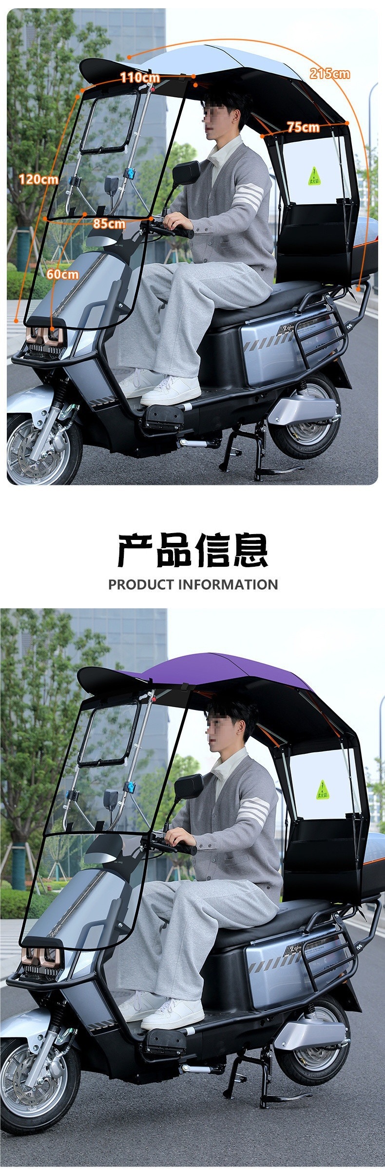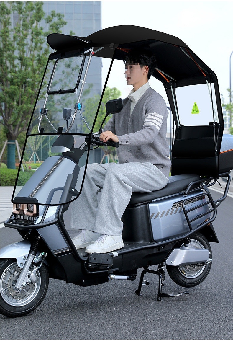 새로운 전기 자동차 차양, 접이식 및 분리형 배터리 보관함, 자전거 파라솔, 비 차단 오토바이 앞유리스토어 가기