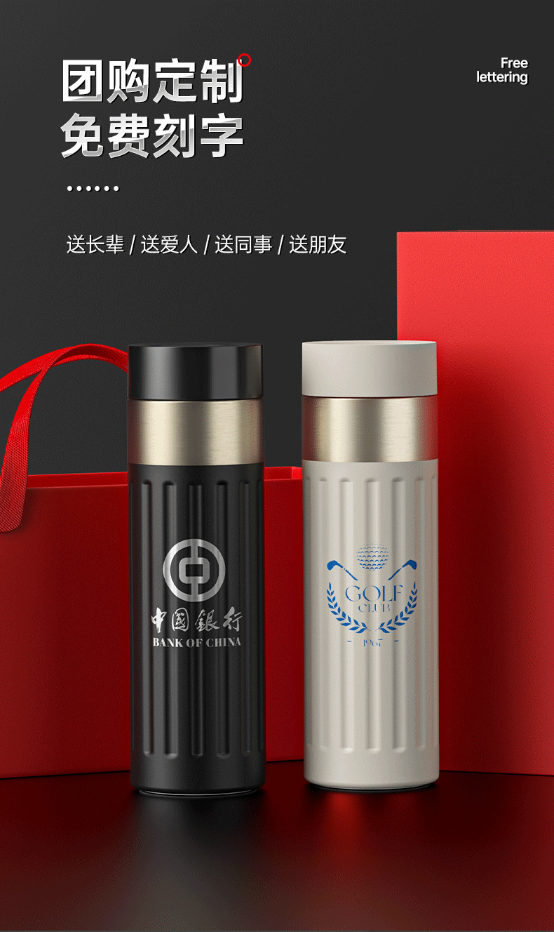 새로운 316 스테인레스 스틸 보온병 컵, 간단하고 가벼운 고급 비즈니스 선물 컵, 명절 선물, 새겨진 로고 보온병 컵