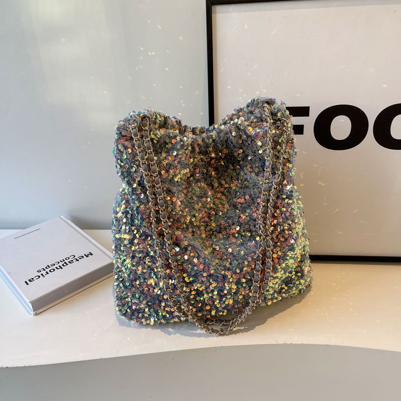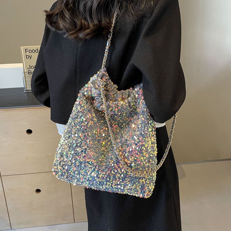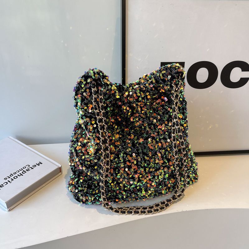 한국 패션 다재다능한 스팽글 하이엔드 여성용 가방 싱글 숄더 겨드랑이 체인 여성용 토트 백 대용량 및 고급스러운