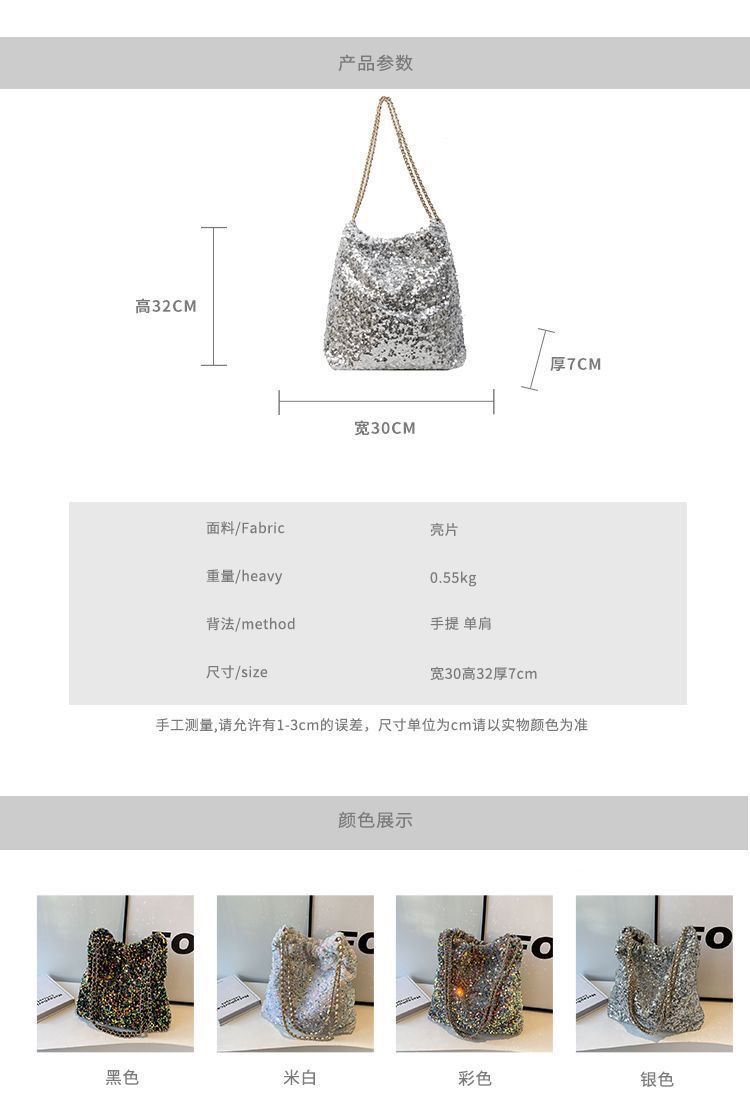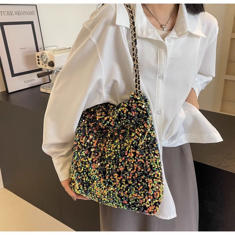 한국 패션 다재다능한 스팽글 하이엔드 여성용 가방 싱글 숄더 겨드랑이 체인 여성용 토트 백 대용량 및 고급스러운스토어 가기
