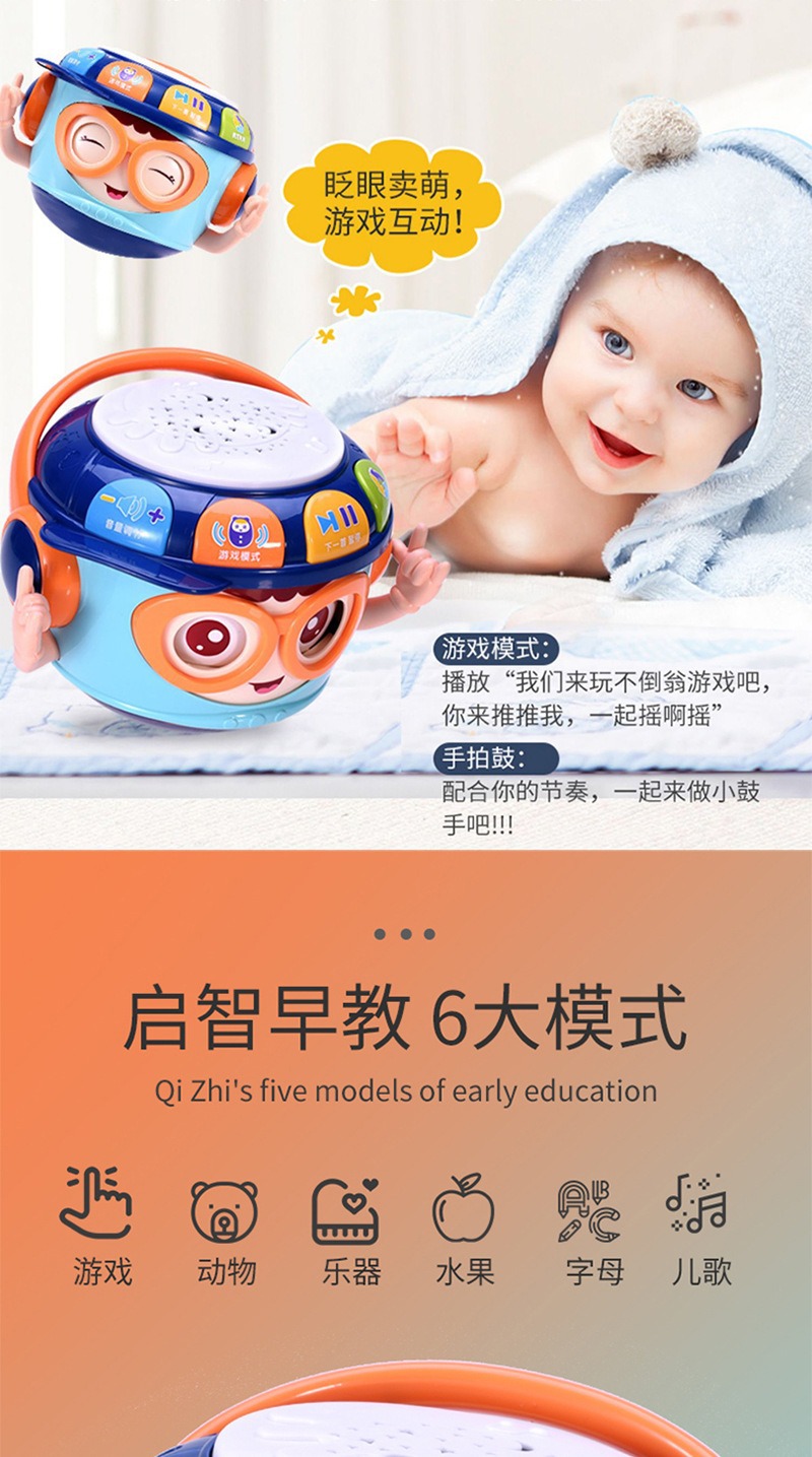 어린이 손 드럼 텀블러 교육 조기 교육 아기 음악 드럼 3-6 개월 아기 장난감 0-1 세