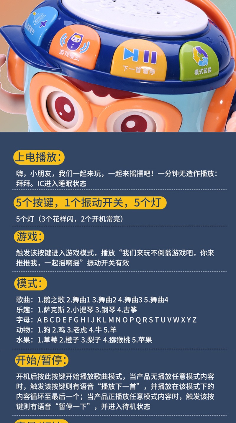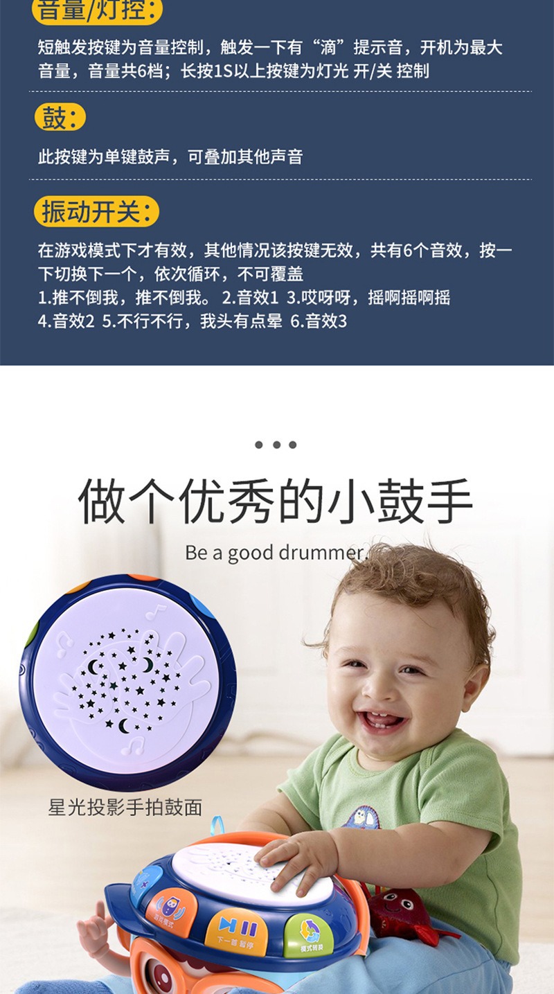 어린이 손 드럼 텀블러 교육 조기 교육 아기 음악 드럼 3-6 개월 아기 장난감 0-1 세스토어 가기