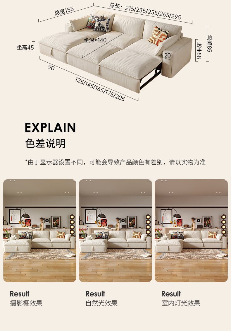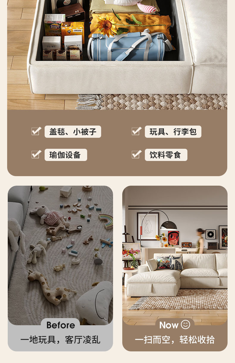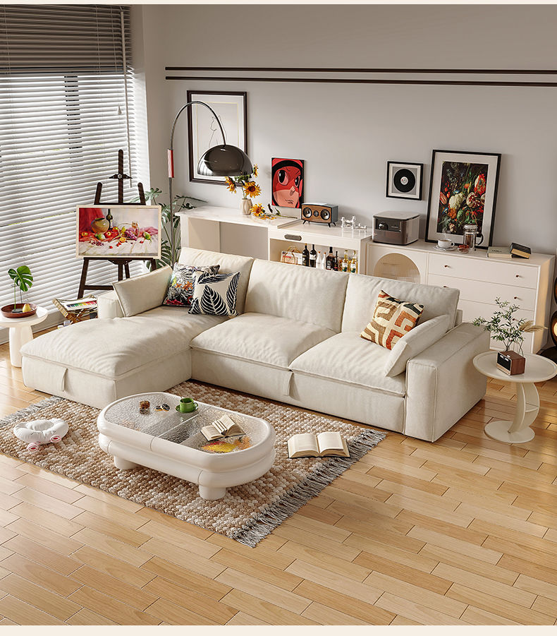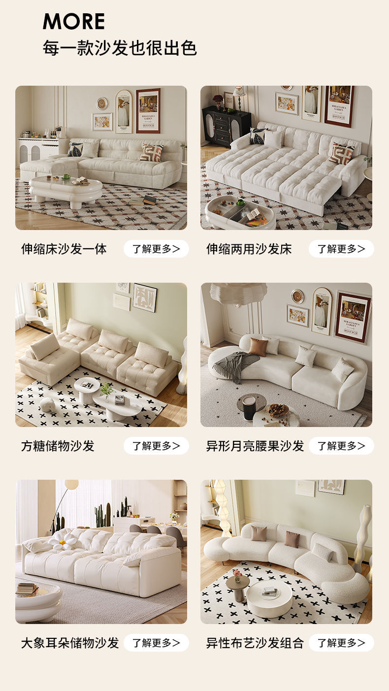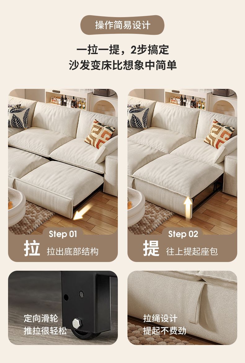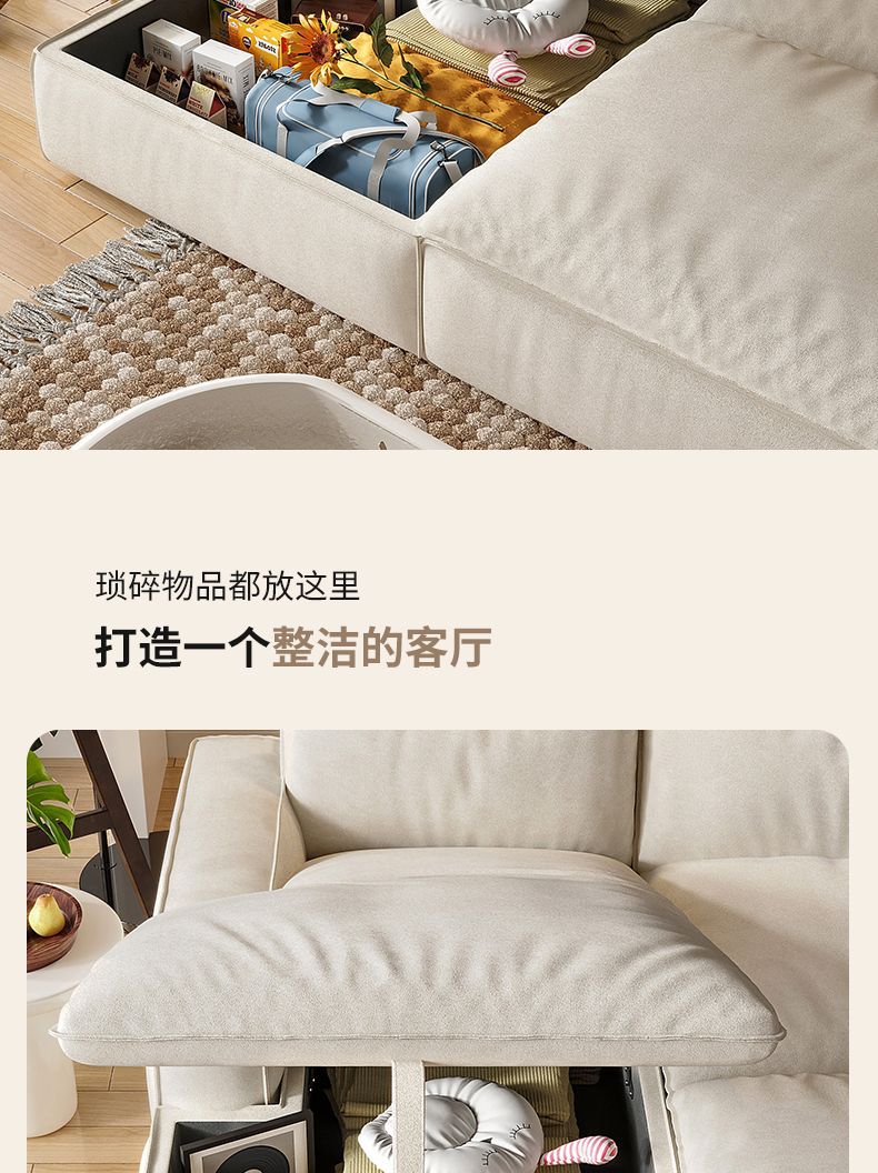 2025 새로운 패션 소파 침대 접이식 이중 목적 크림 스타일 작은 아파트 거실 두부 블록 소파 스토리지 슬라이딩