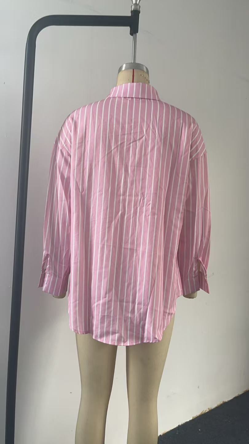 유럽과 미국의 국경 간 아마존 대외 무역 2025 가을 겨울 새로운 긴팔 카디건 재킷 여성 스트라이프 셔츠 여성 의류
