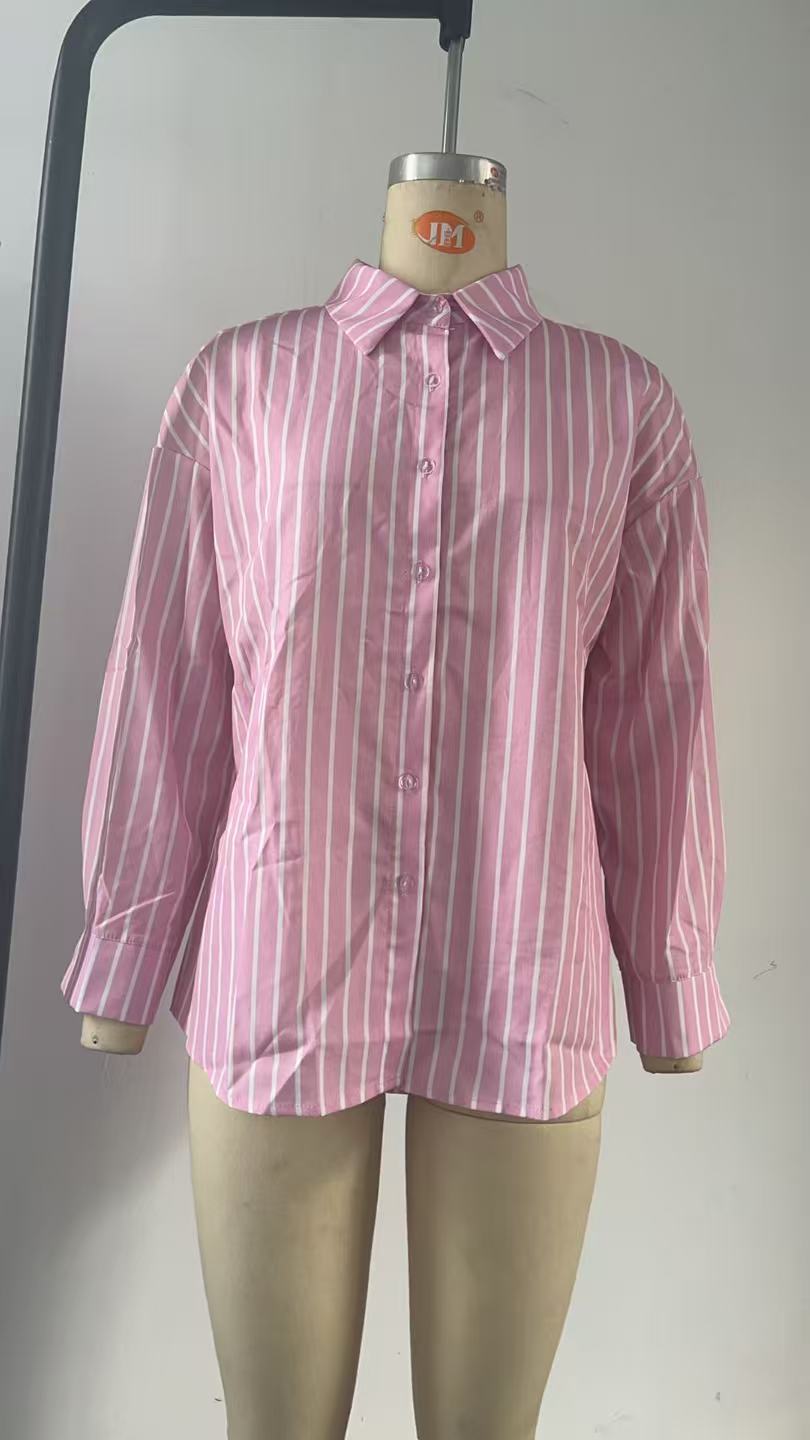유럽과 미국의 국경 간 아마존 대외 무역 2025 가을 겨울 새로운 긴팔 카디건 재킷 여성 스트라이프 셔츠 여성 의류스토어 가기