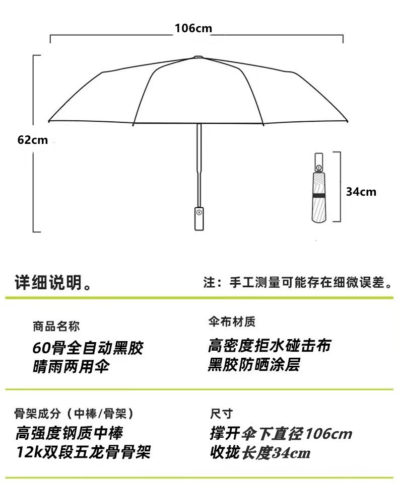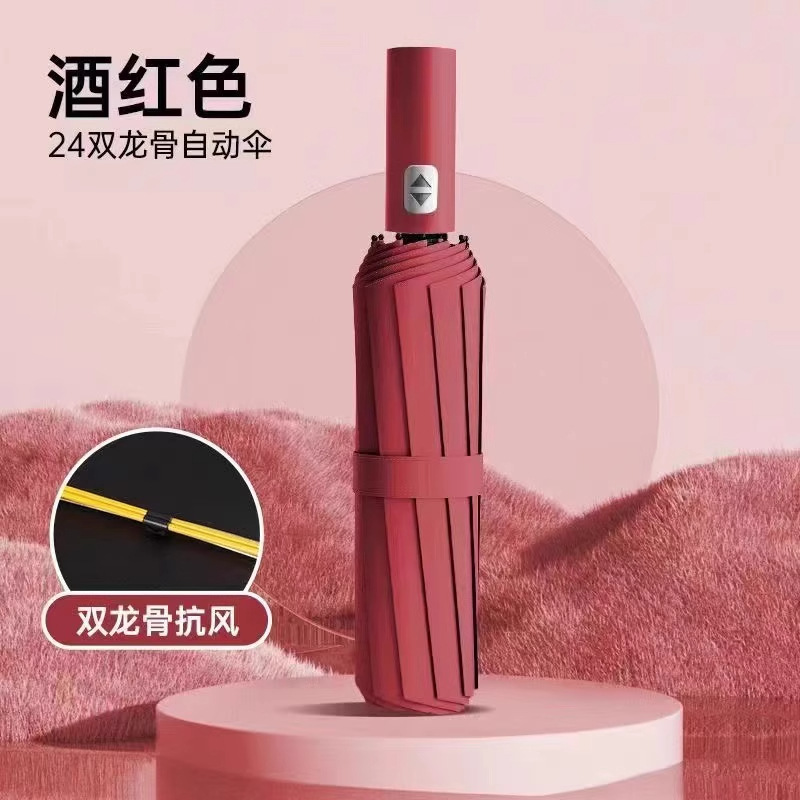 완전 자동 60 뼈 두꺼운 우산 강화 남성용 접이식 우산 이중 목적 대형 방풍 파라솔 맞춤형 도매
