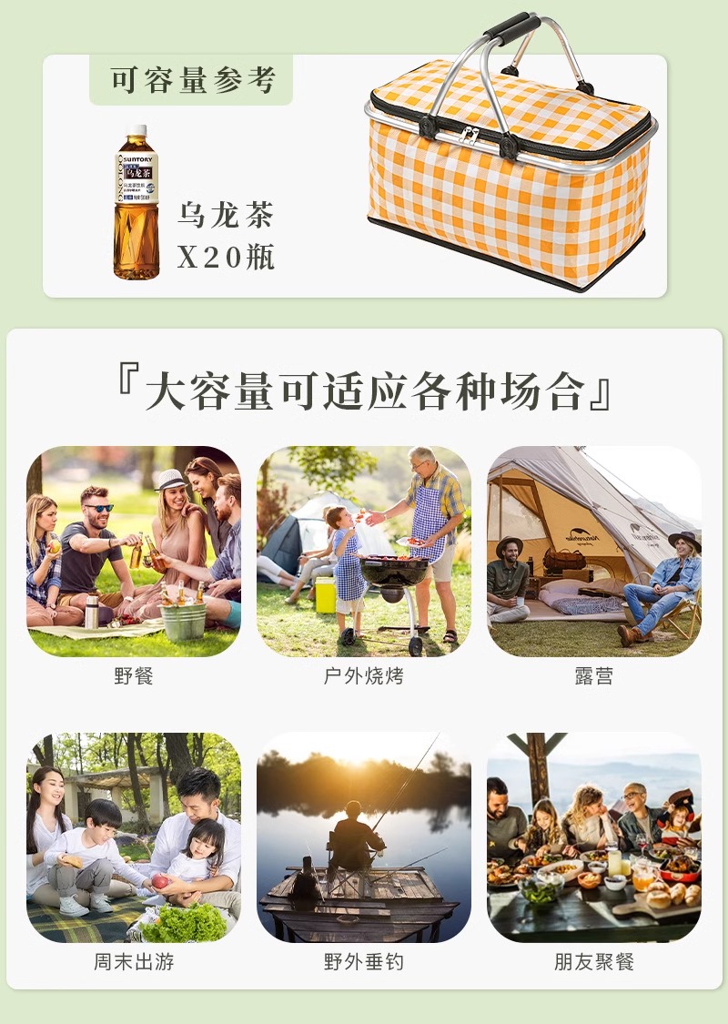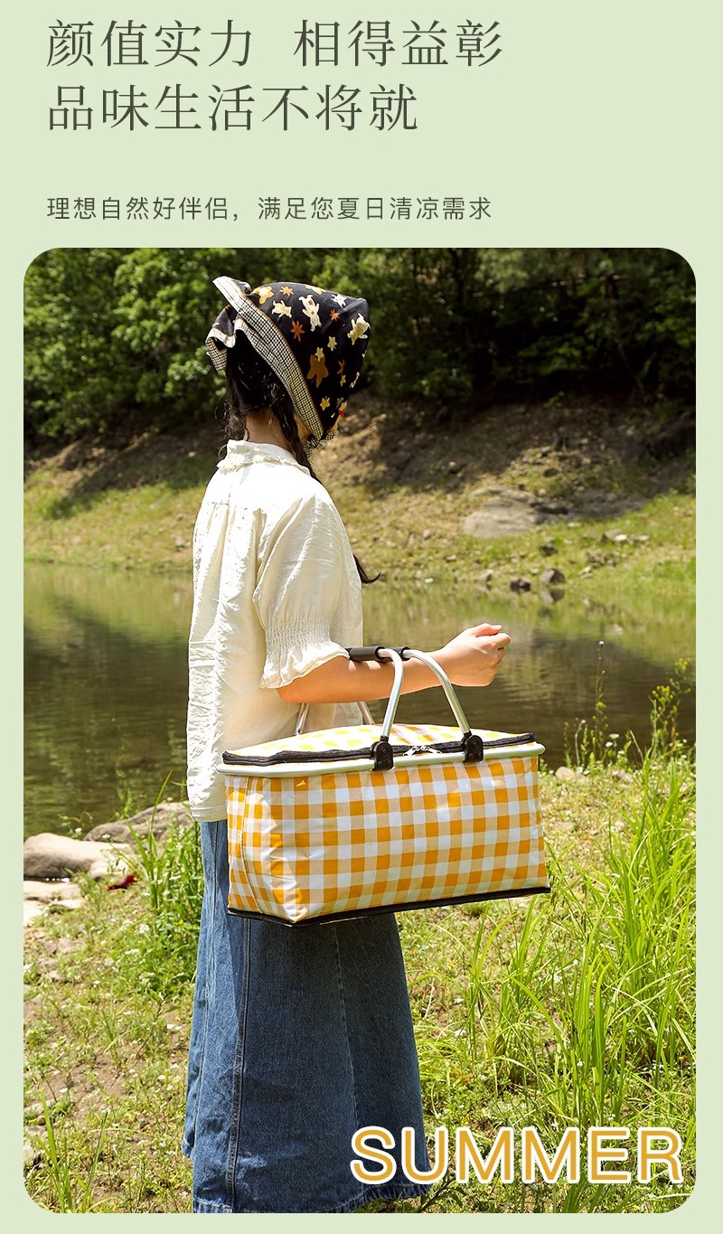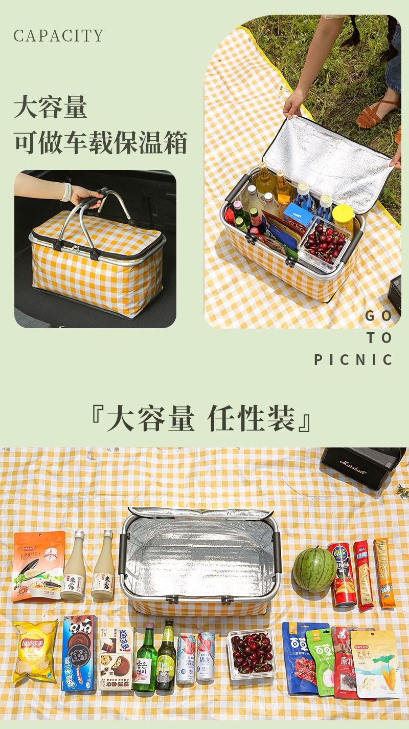 단열 피크닉 바구니 도시락 가방 야외 휴대용 야채 바구니 접이식 두꺼운 쇼핑 상자 아이스 백 단열 피크닉 가방