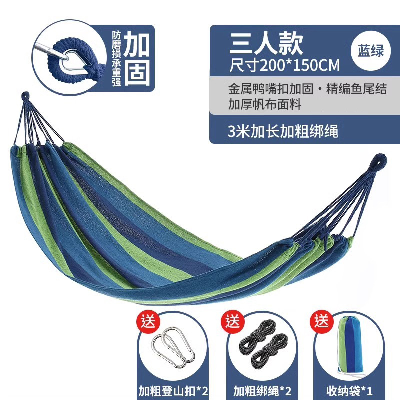 • [클래식 3인 모델] 두꺼워진 파란색과 녹색 줄무늬 200*150cm (카라비너 + 두꺼운 로프 + 수납가방)
