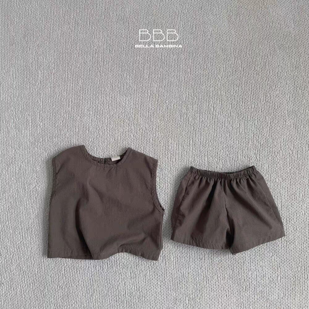 소년과 소녀를위한 한국 스타일의 새로운 유아 및 아동 의류 여름 편안하고 시원한 조끼 반바지 정장 홈 의류스토어 가기