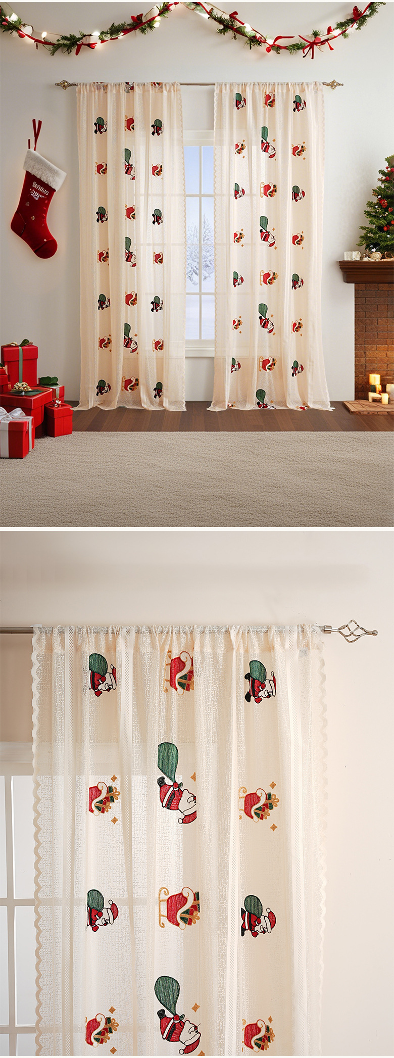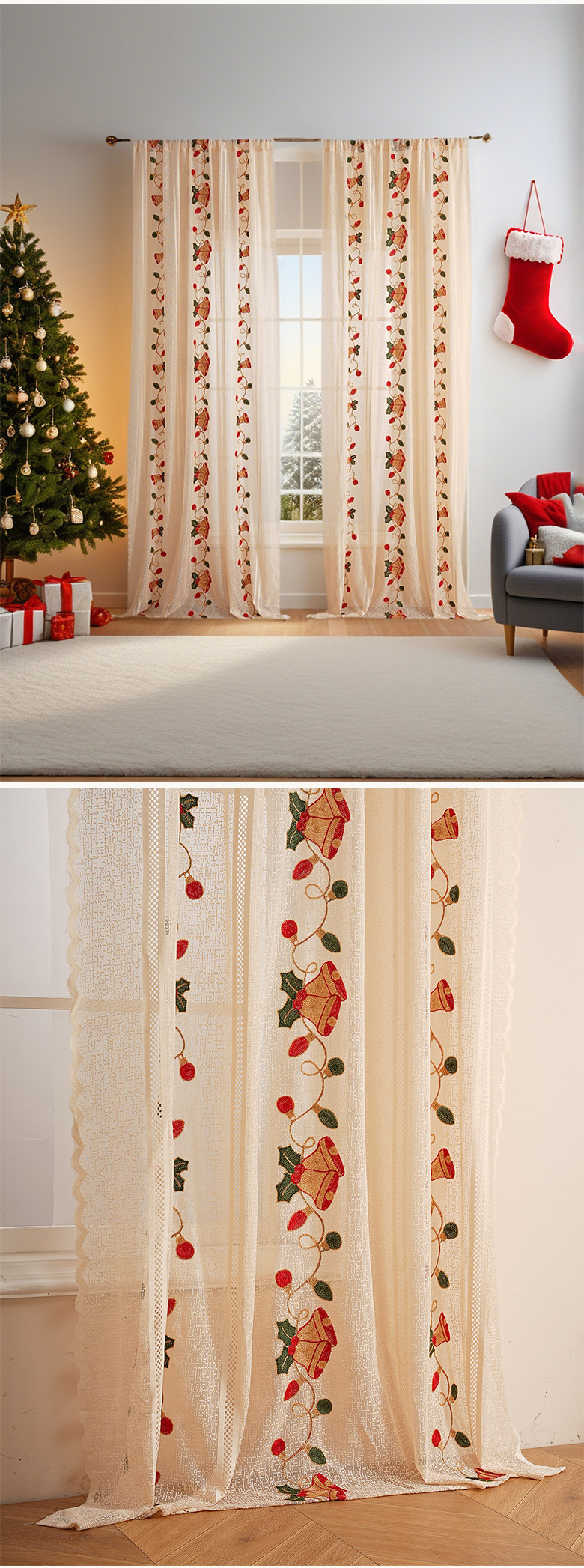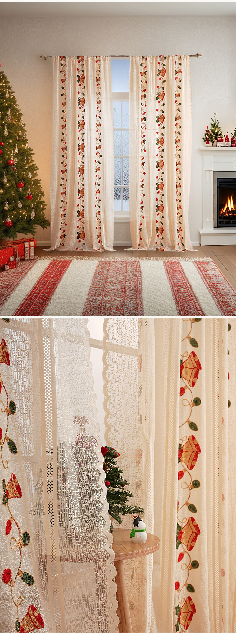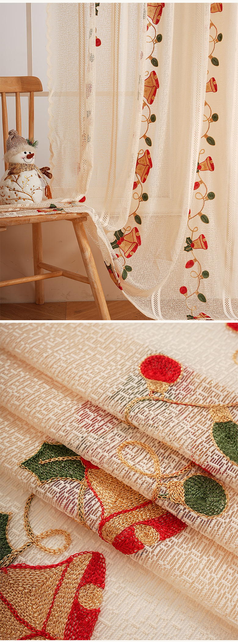 미국식 거실, 침실, 베드룸, 발코니, 거즈 커튼, 면 및 린넨 크리스마스 자수 커튼, 완제품 휴일 창문 커튼, 크로스보더 장식