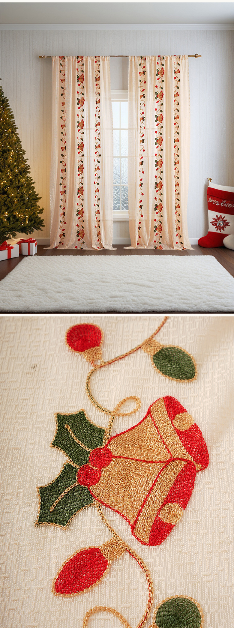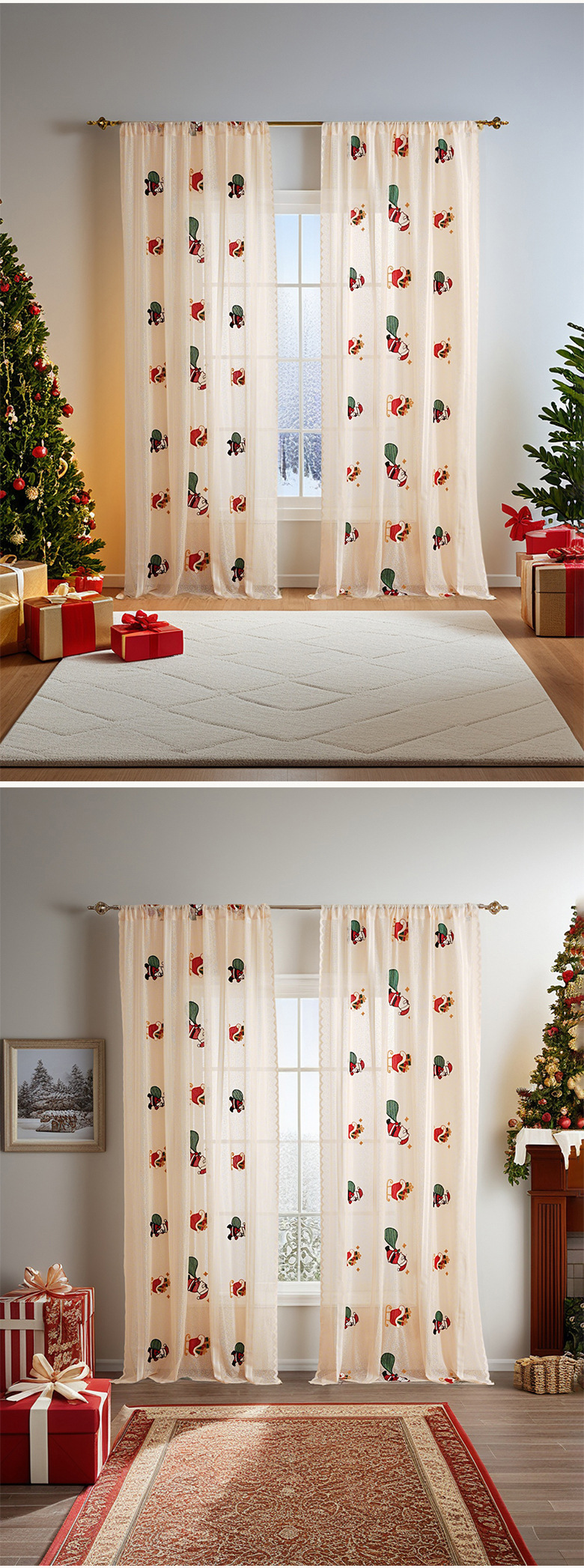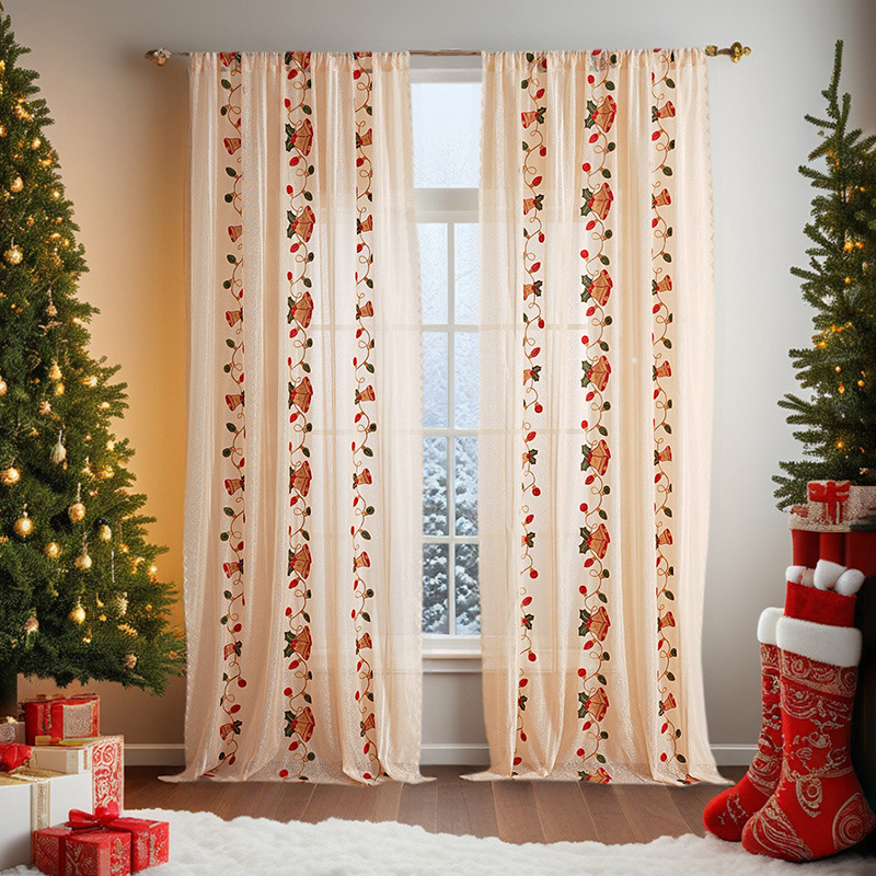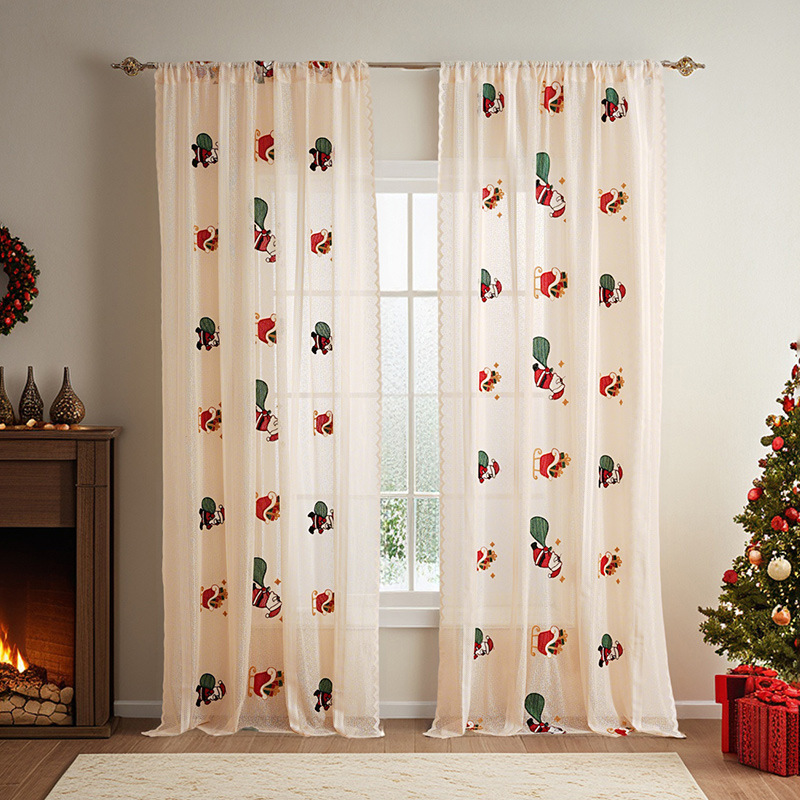 미국식 거실, 침실, 베드룸, 발코니, 거즈 커튼, 면 및 린넨 크리스마스 자수 커튼, 완제품 휴일 창문 커튼, 크로스보더 장식