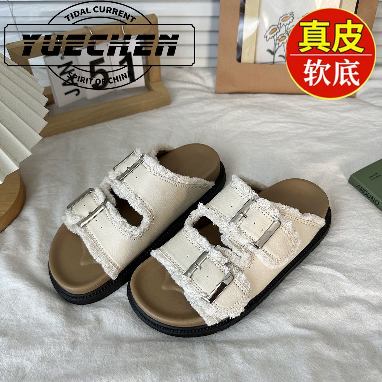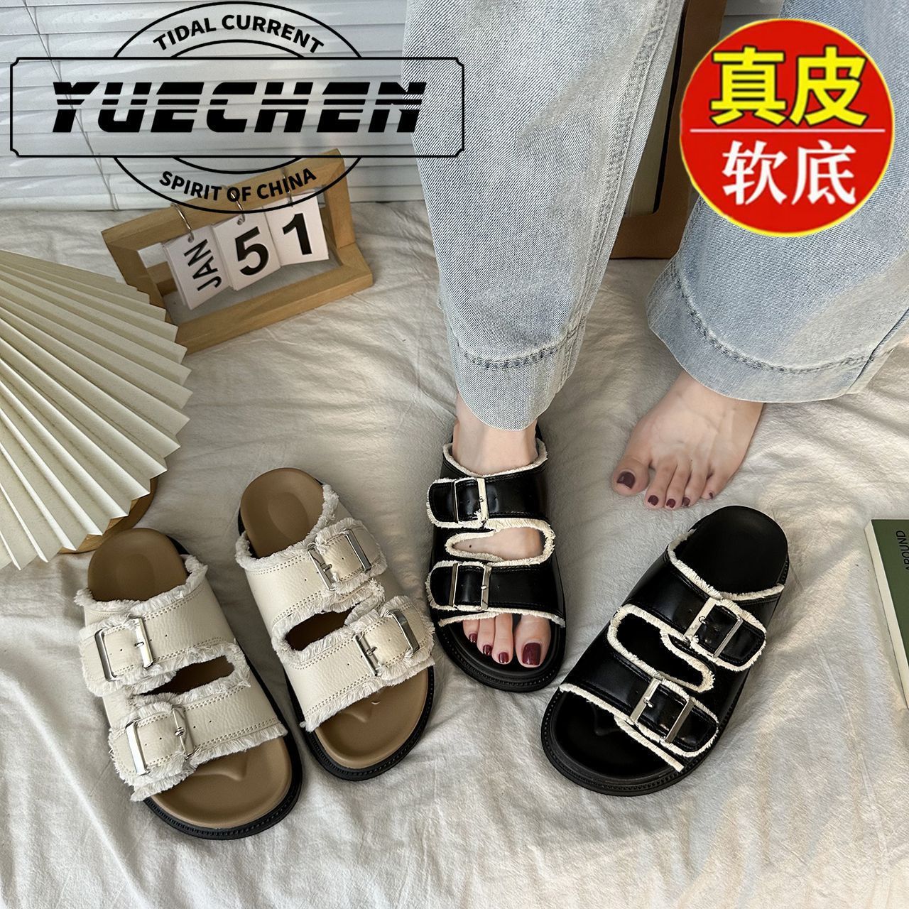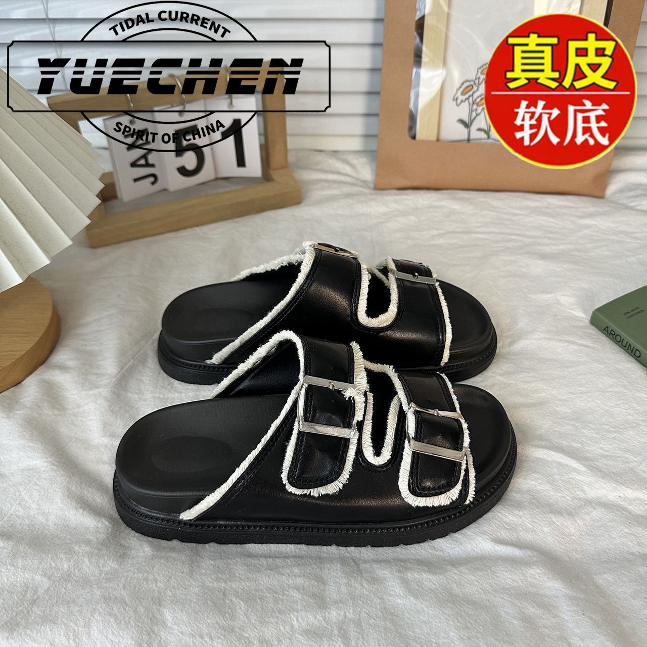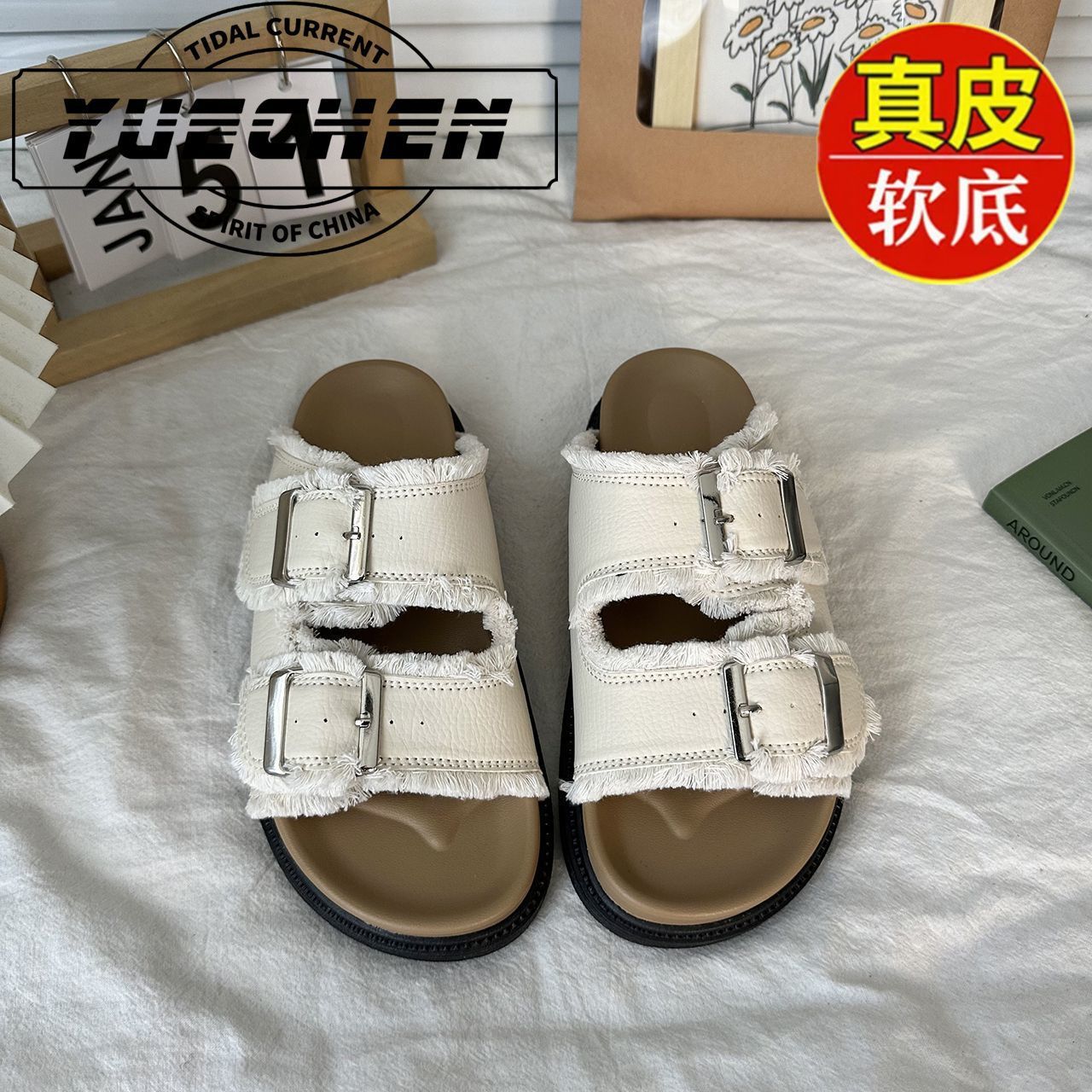 레트로 스타일의 프린지 슬리퍼, 여름용 패션 플랫 샌들, 캐주얼 두꺼운 밑창 샌들스토어 가기