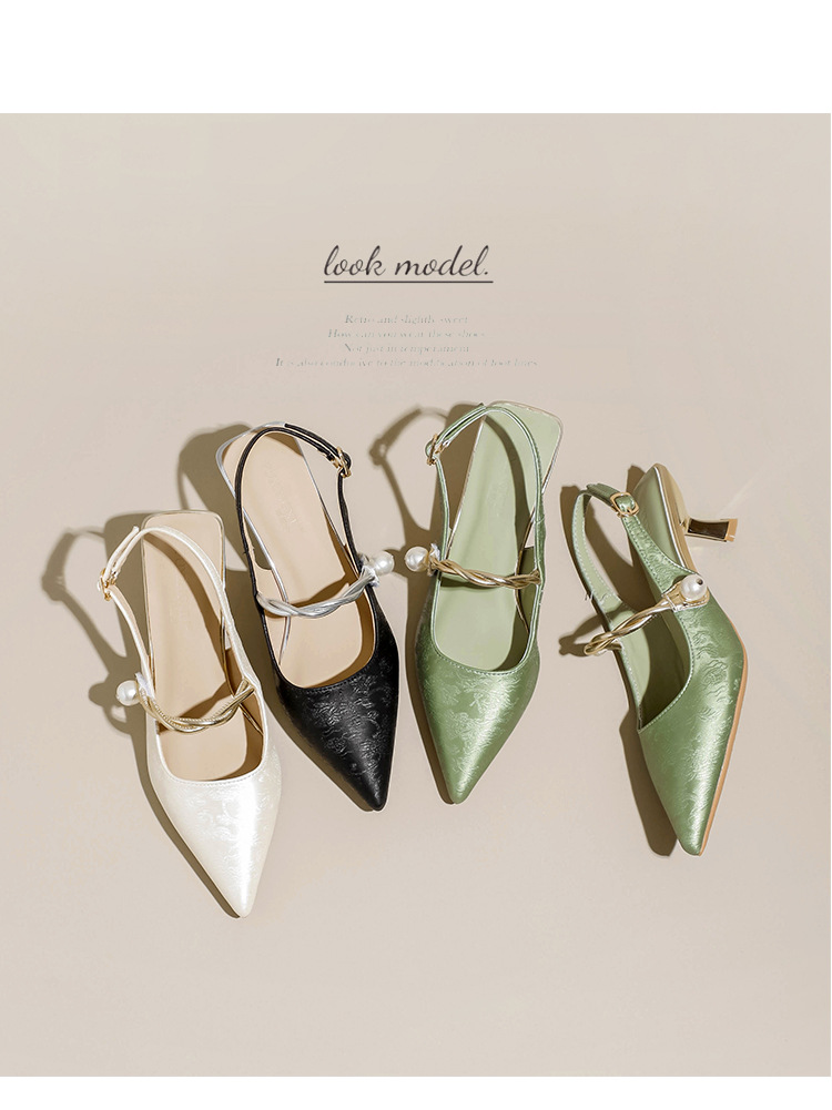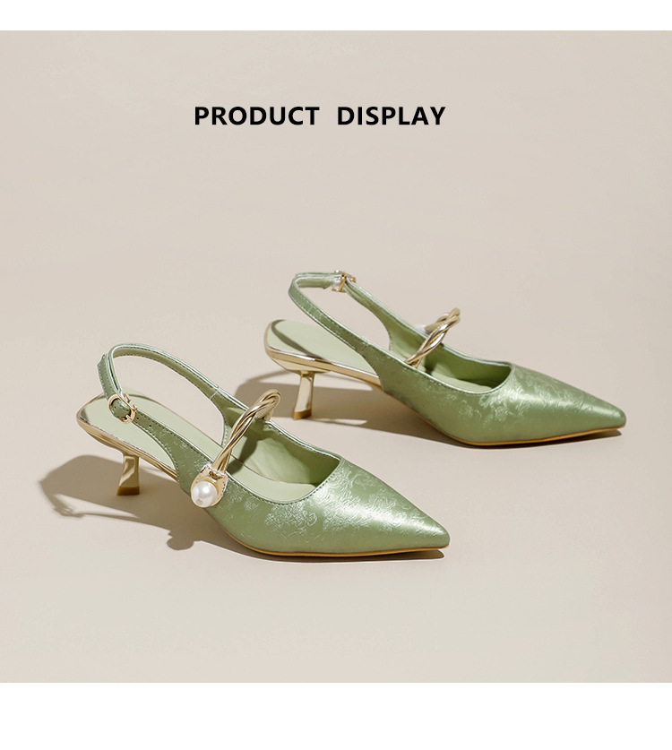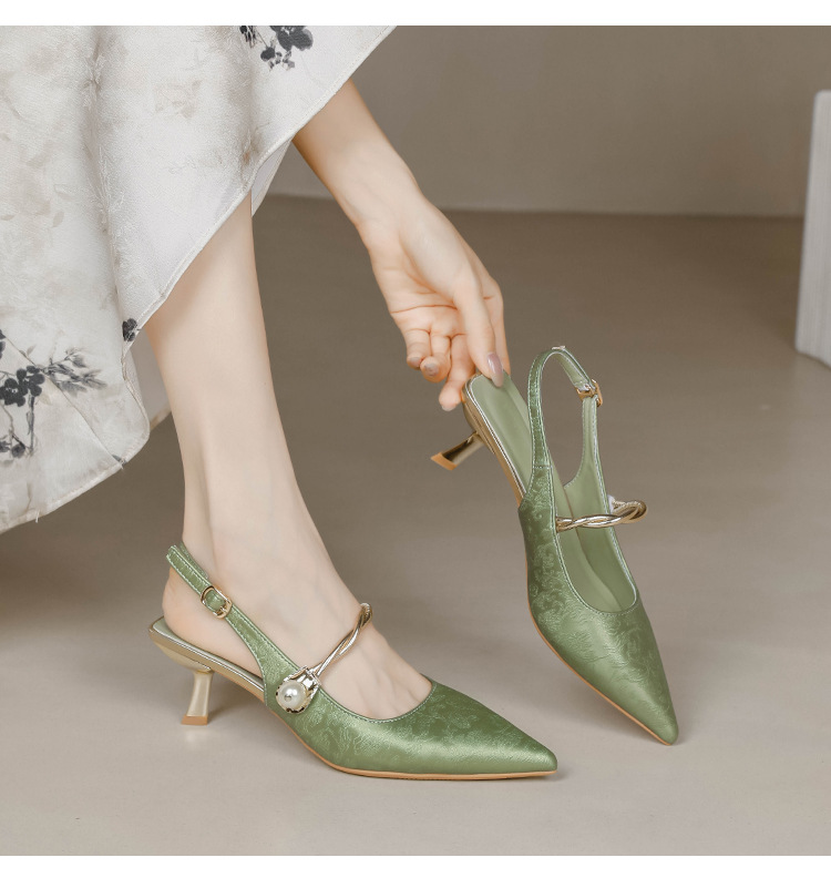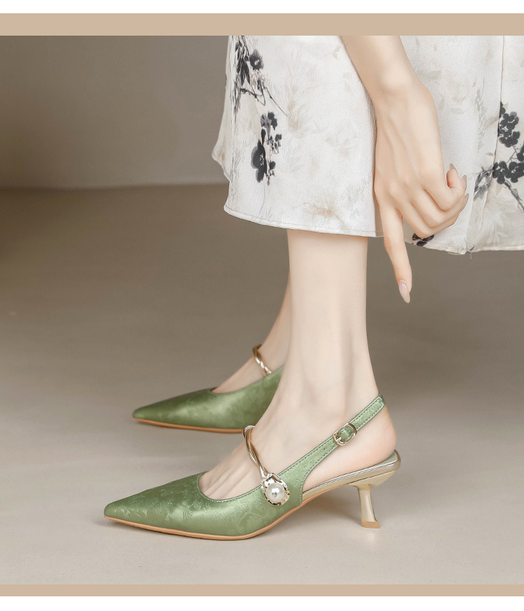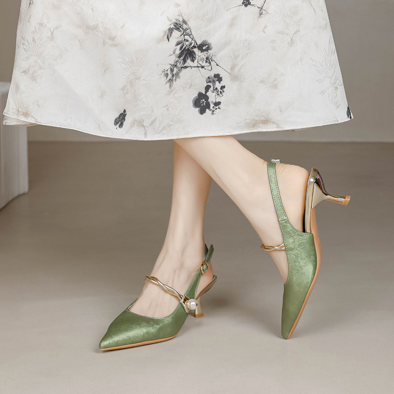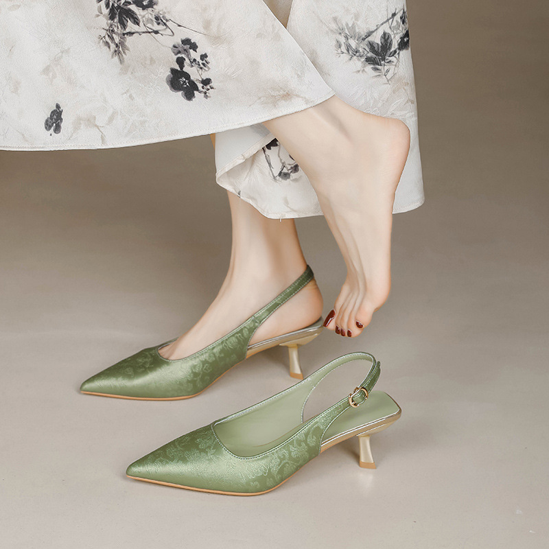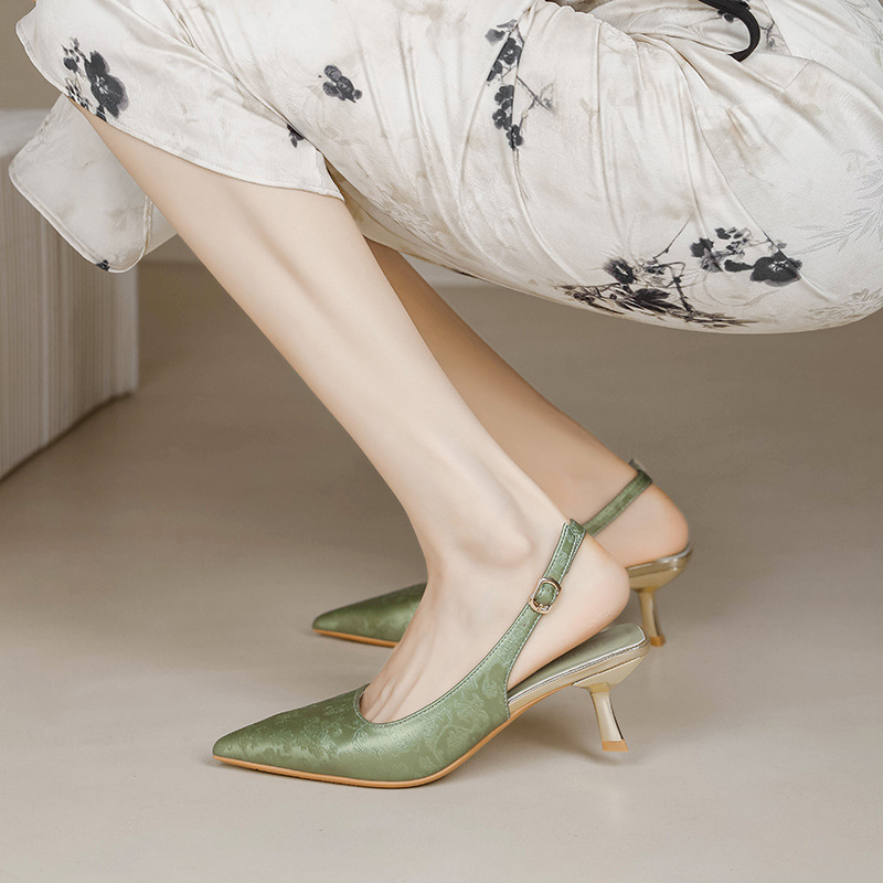 Fortune Girl 2025 봄 여름 신상 뾰족한 굽 새로운 중국 스타일 국풍 치파오 하이힐 바오터우 샌들