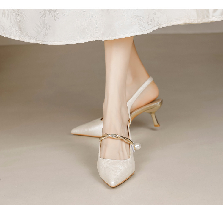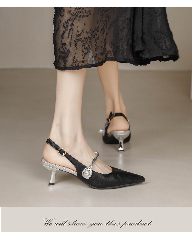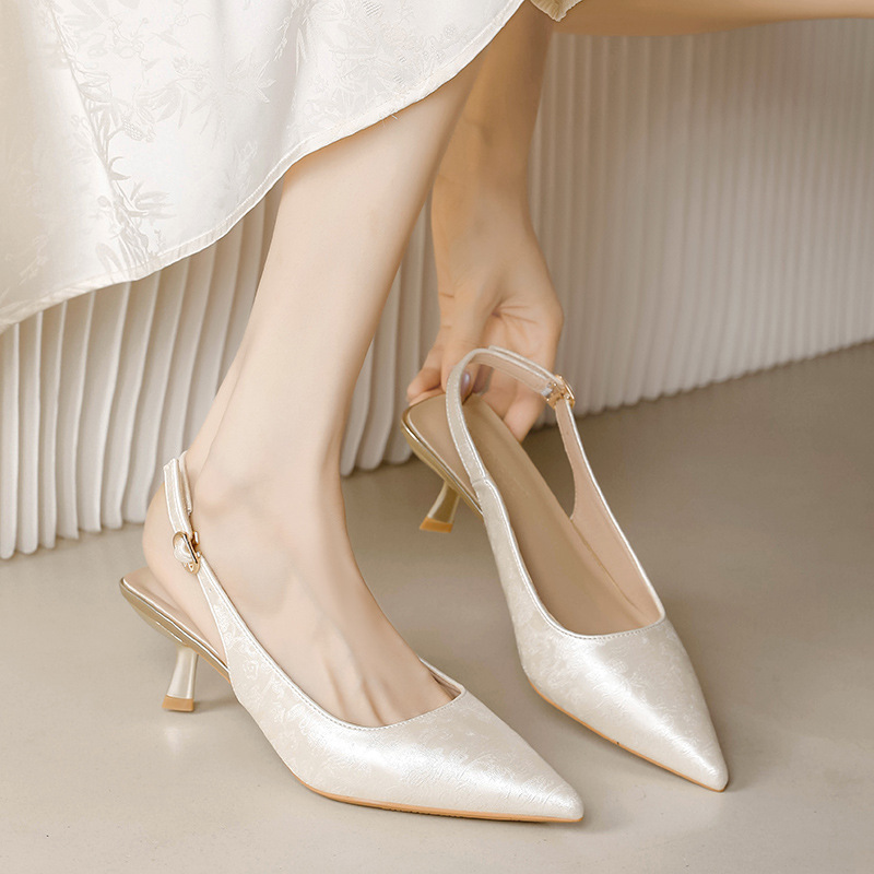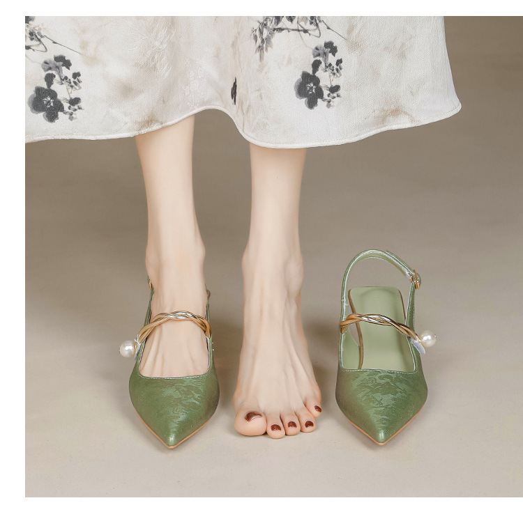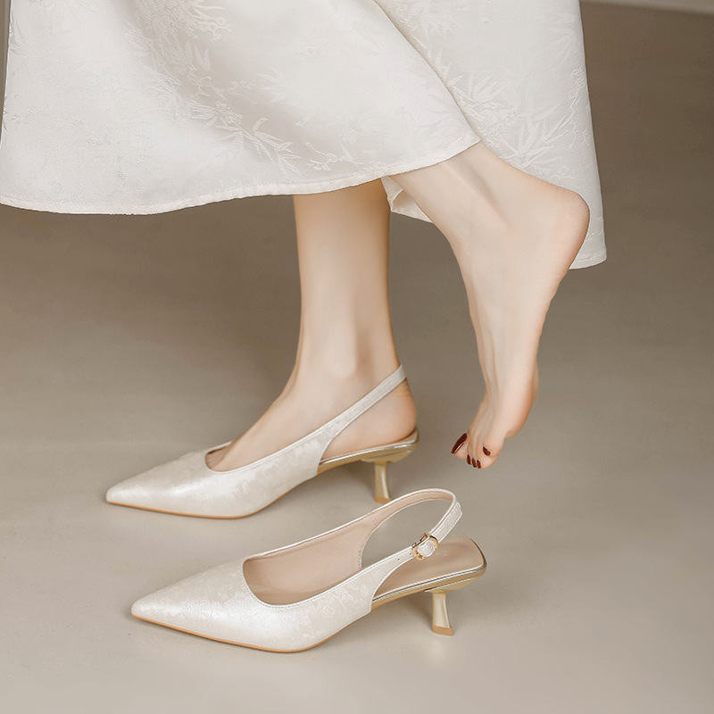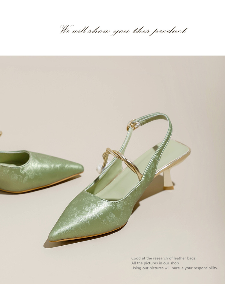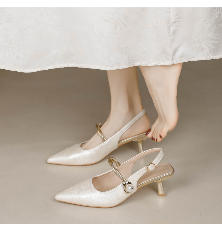 Fortune Girl 2025 봄 여름 신상 뾰족한 굽 새로운 중국 스타일 국풍 치파오 하이힐 바오터우 샌들