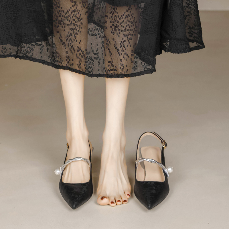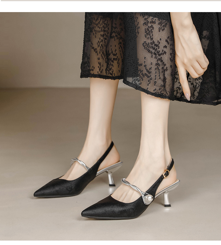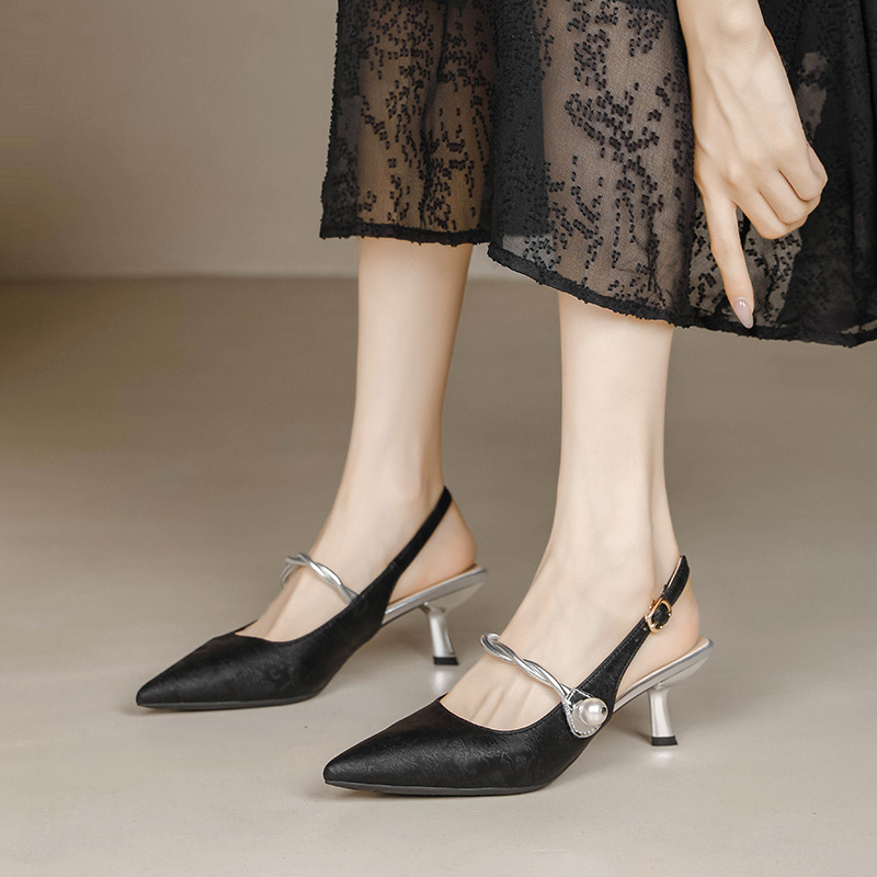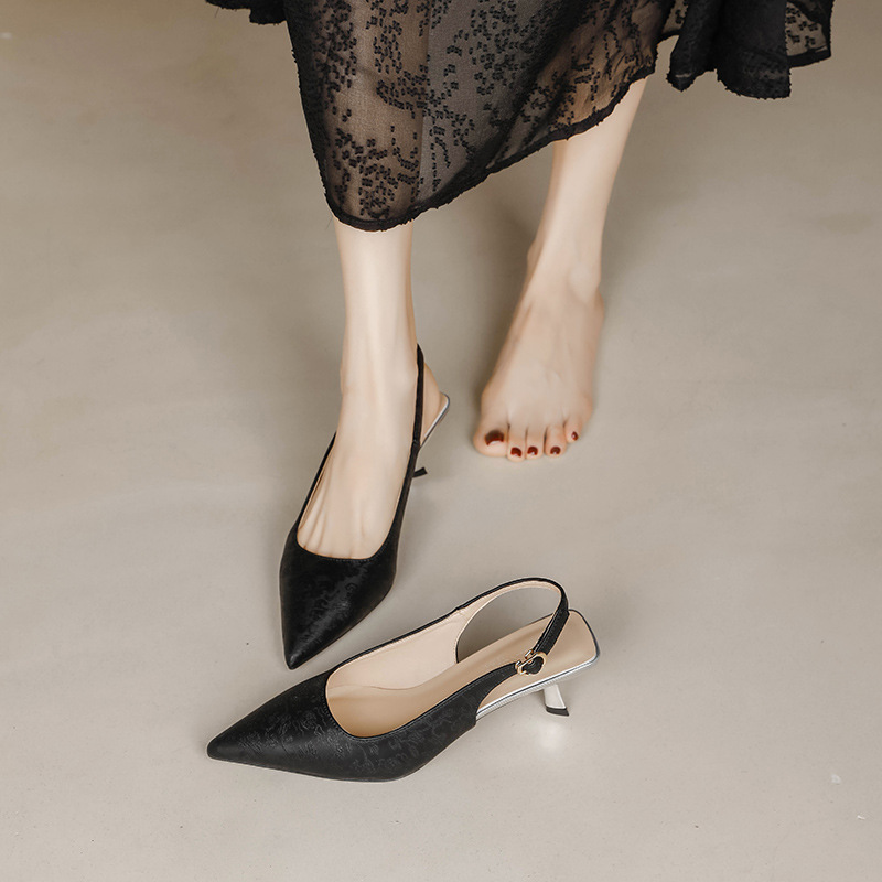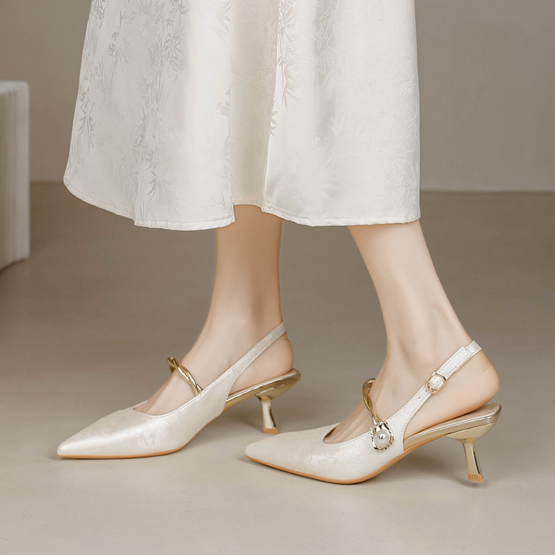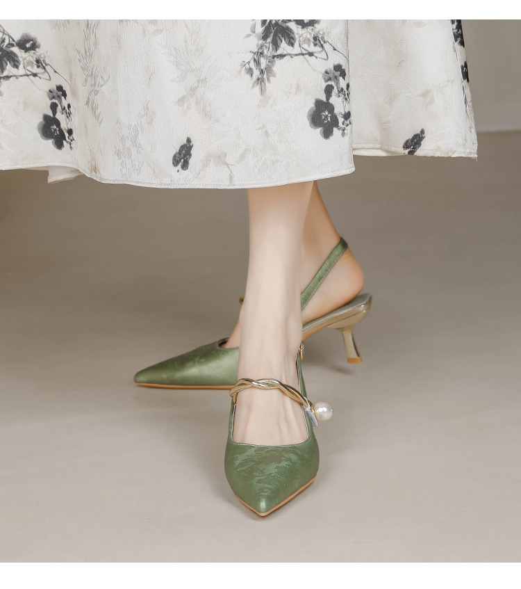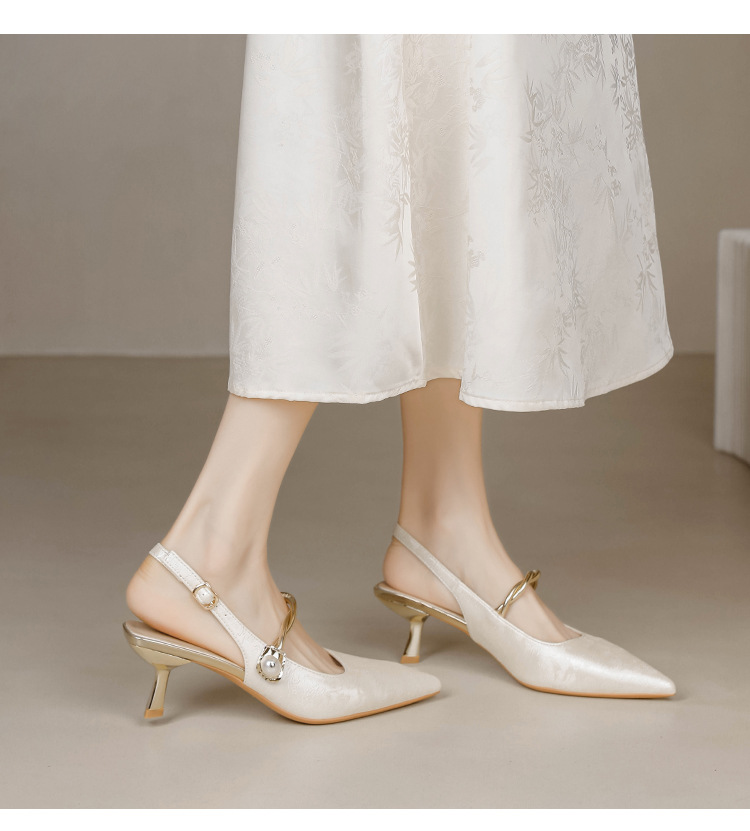 Fortune Girl 2025 봄 여름 신상 뾰족한 굽 새로운 중국 스타일 국풍 치파오 하이힐 바오터우 샌들