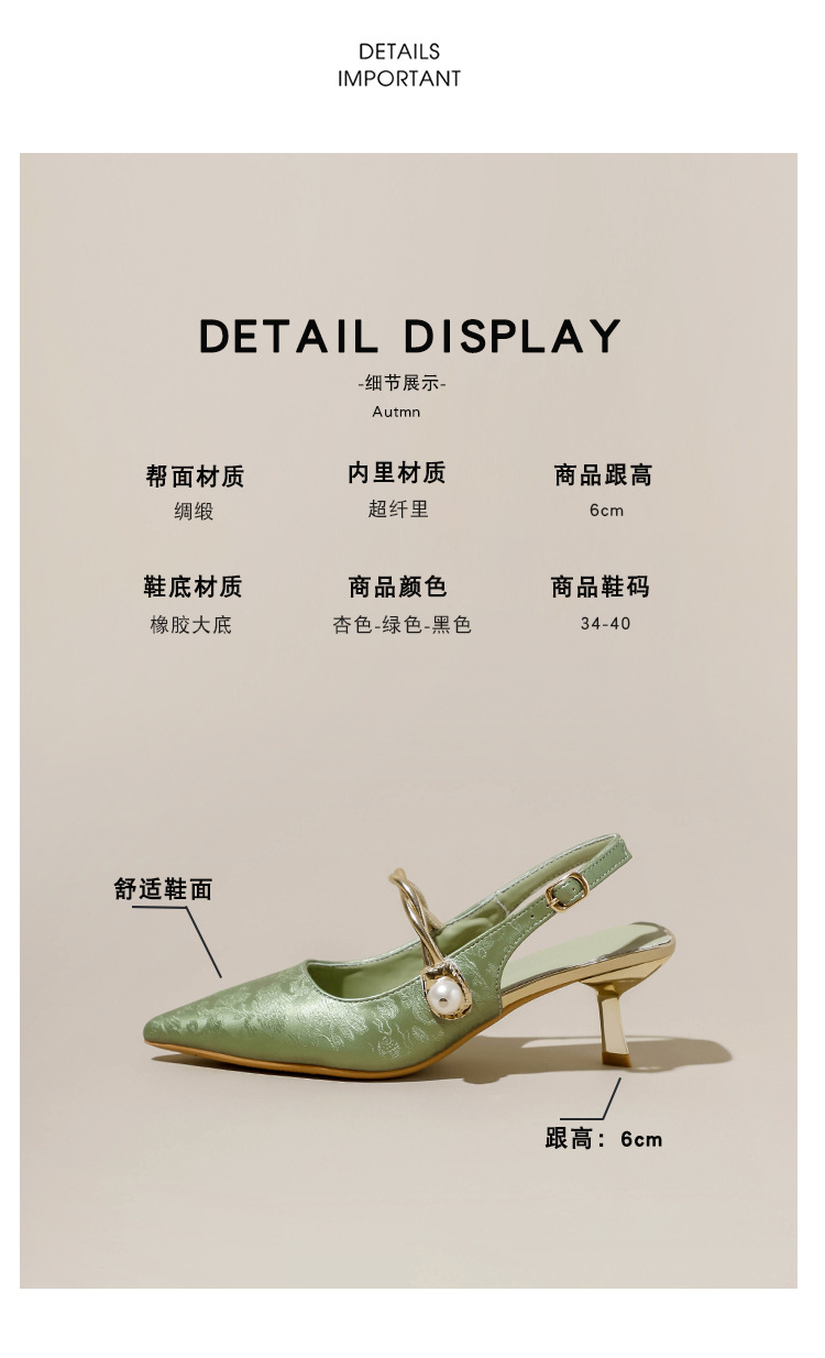 Fortune Girl 2025 봄 여름 신상 뾰족한 굽 새로운 중국 스타일 국풍 치파오 하이힐 바오터우 샌들스토어 가기
