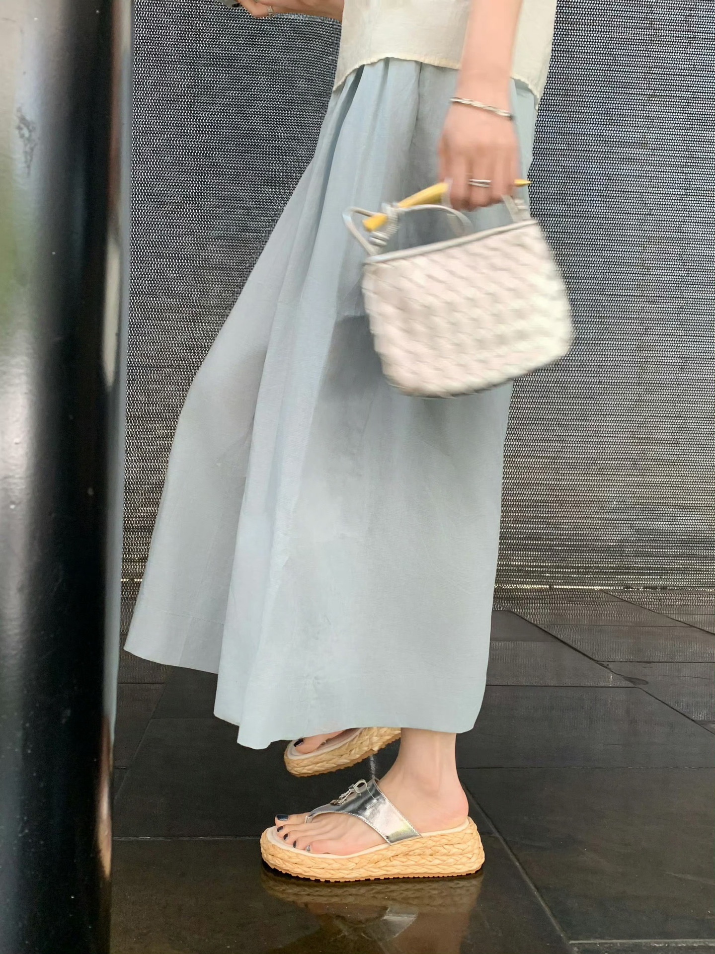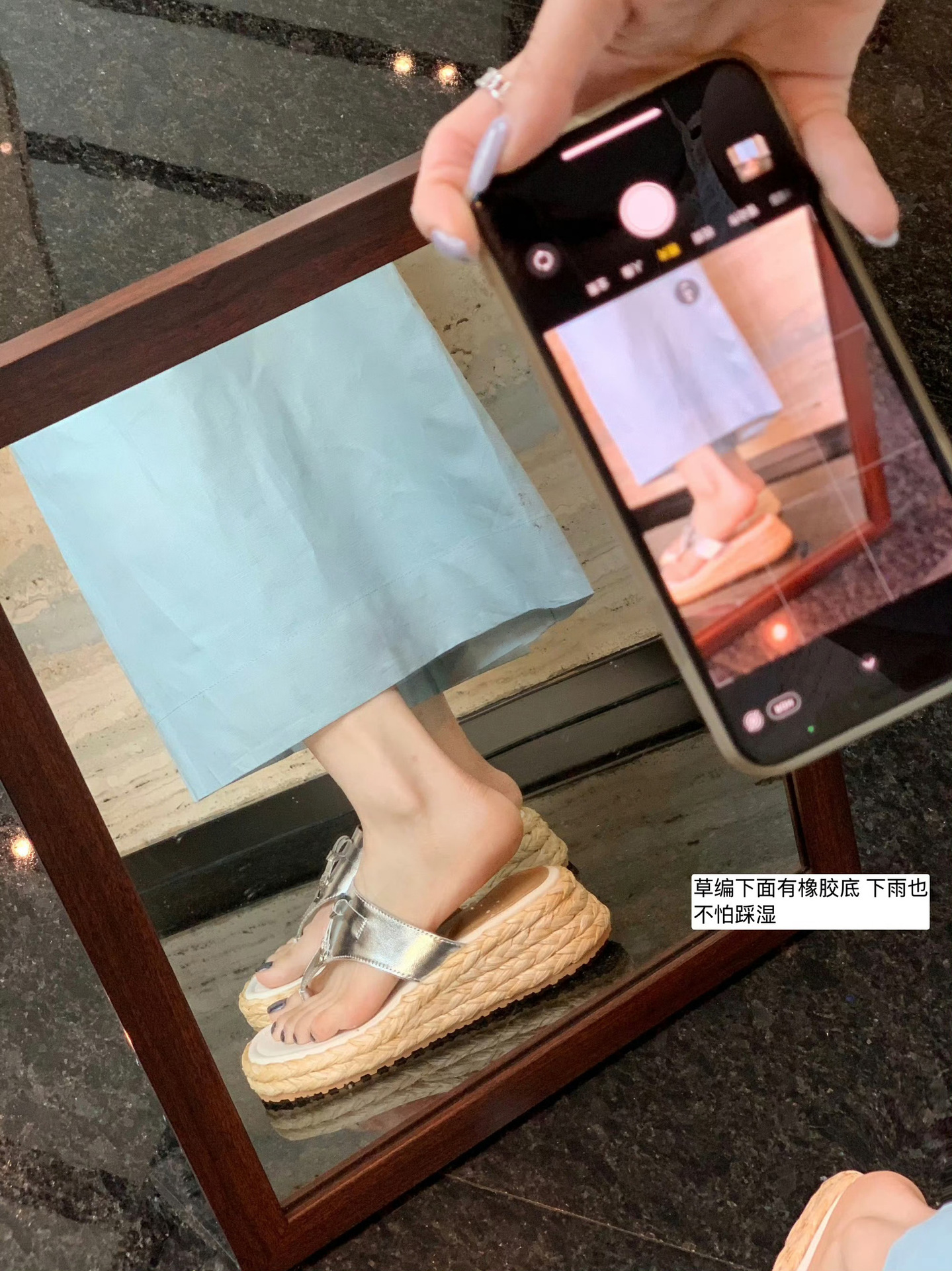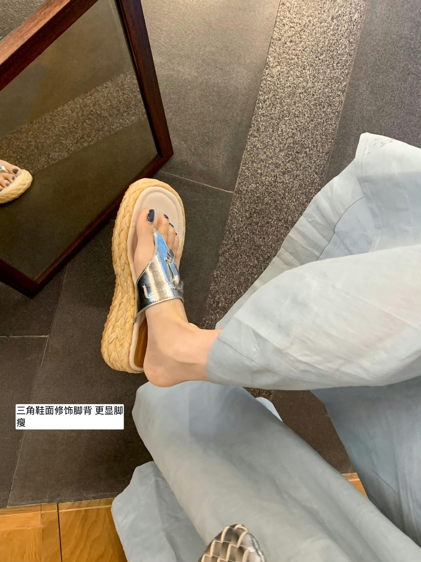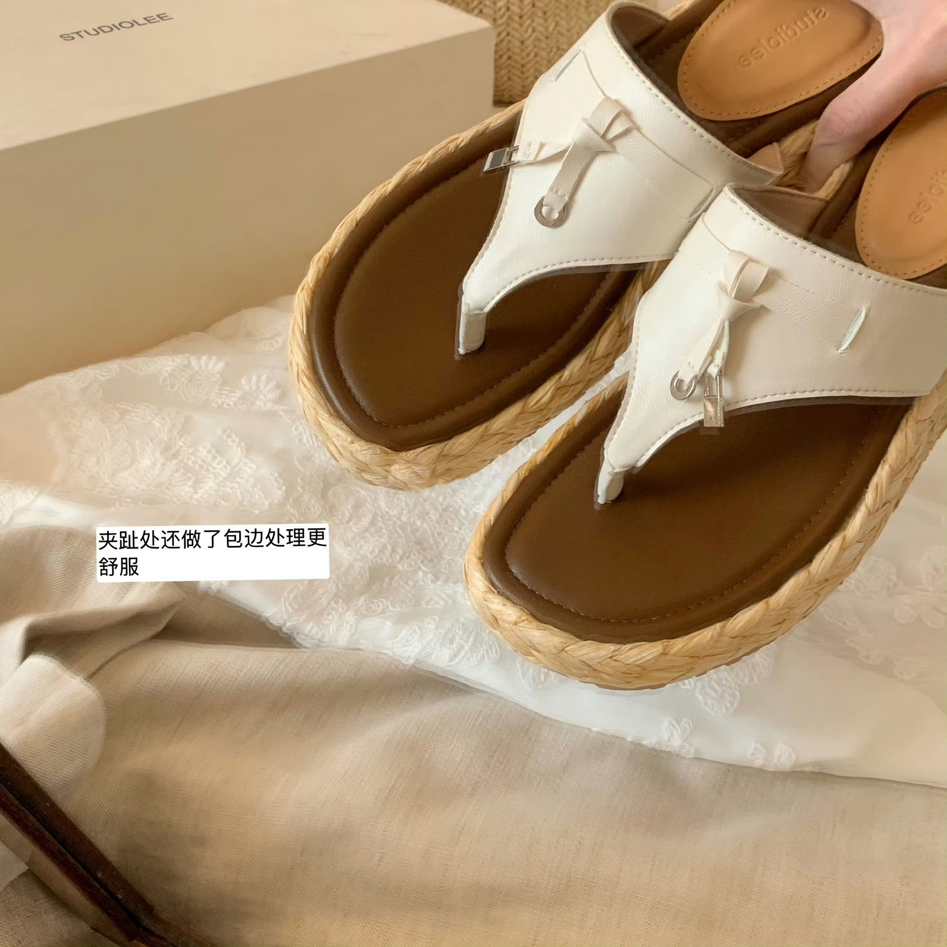 포도맘과 같은 스타일로 5.5cm 키높이~ 소가죽 두꺼운 밑창, 태슬 버클 장식, 여성용 헤링본 샌들스토어 가기