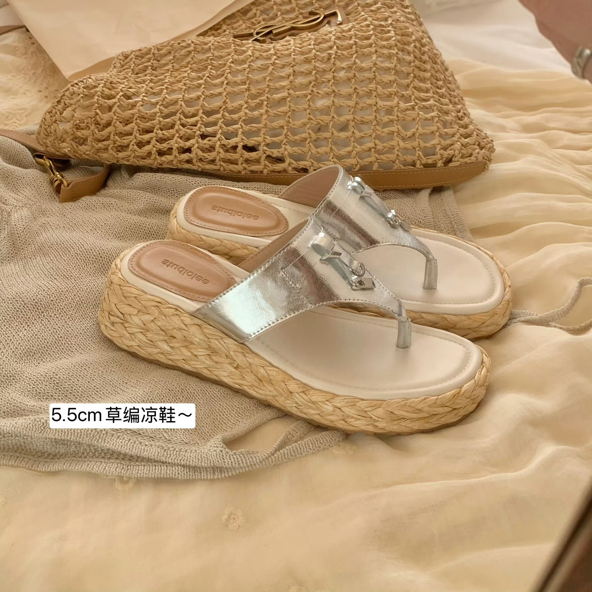 포도맘과 같은 스타일로 5.5cm 키높이~ 소가죽 두꺼운 밑창, 태슬 버클 장식, 여성용 헤링본 샌들